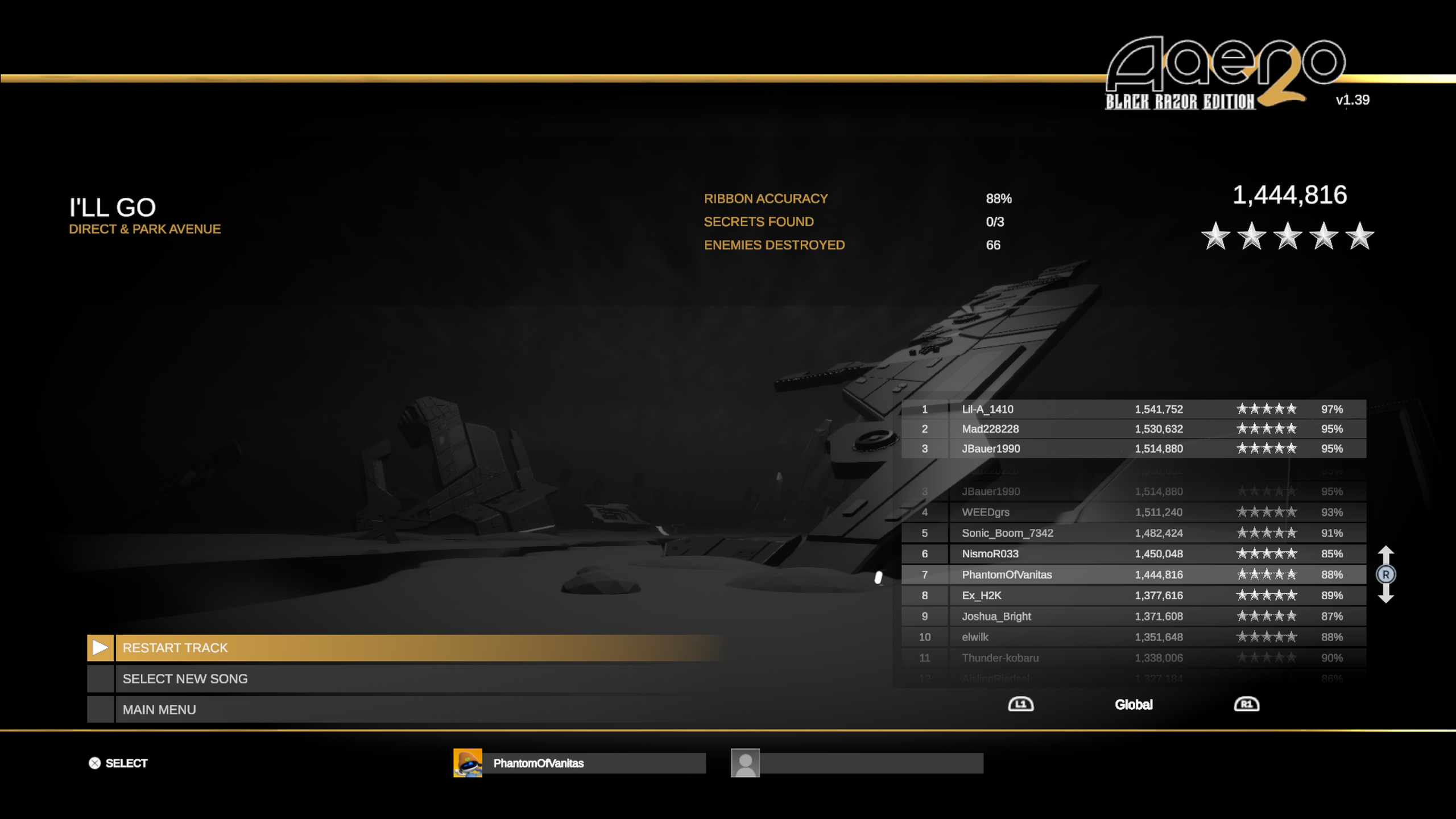 Replayability is woven into nearly every system. Hidden red orbs scattered throughout levels encourage exploration and repeat runs, while star ratings determine access to new tracks and difficulty tiers. The Black Razor Edition alleviates some of the original progression friction by including additional songs that also contribute to star totals, allowing you more flexibility in how you unlock content. Beyond that, leaderboards, daily and weekly challenges, and an XP-based leveling system add a layer of meta progression. Customizable profile cards, complete with titles, backgrounds, medals, and stat displays, are a small but effective touch, giving competitive play a sense of personality and presence before matches even begin.