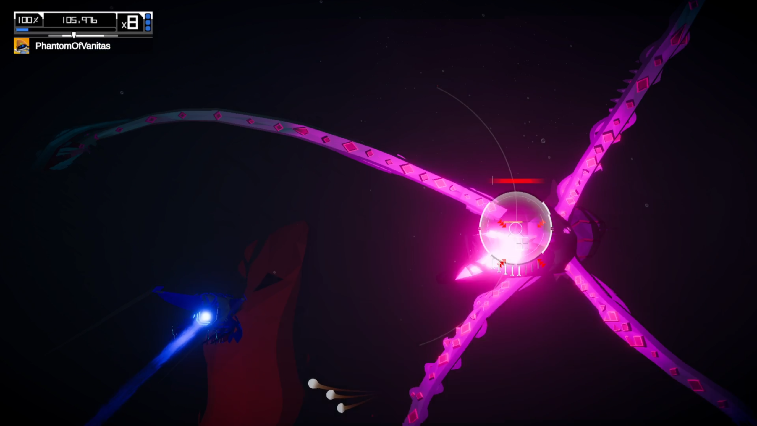 Aaero2 remains a rhythm game that asks you to physically inhabit music. Each level is built around a single track, represented visually by glowing ribbons of light that trace melodies and vocals across a circular playfield. Using the left stick, you guide your ship as precisely as possible along these ribbons, with tighter accuracy directly translating into higher scores. At the same time, enemies swarm the playfield, requiring constant attention and careful positioning. The genius of Aaero’s design is how these elements overlap: movement creates music, combat punctuates it, and success feels less like clearing obstacles and more like performing a demanding piece of interactive choreography.