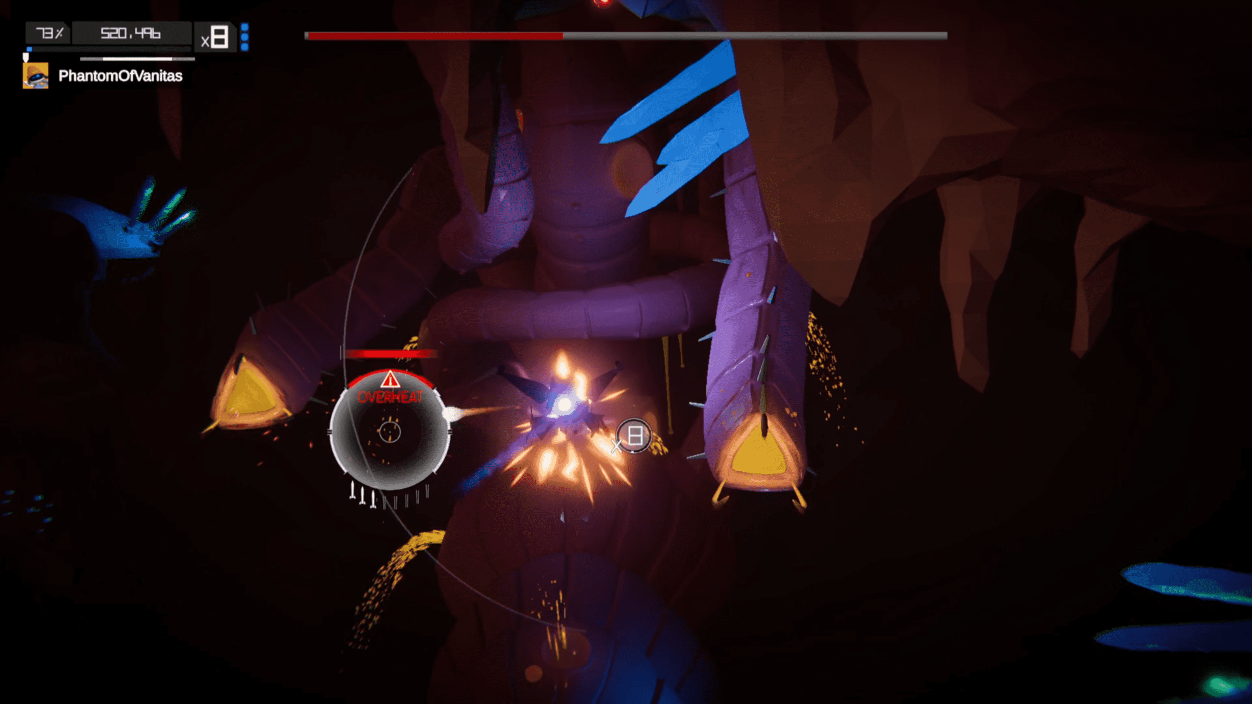 Narratively, Aaero2 is light. As with the first game, the story exists more as atmosphere than plot, communicated through abstract visuals, alien architecture, and the implied conflict with hostile mechanical and organic enemies that populate each track. You are less a character in a defined tale and more a performer moving through a hostile, music-driven universe. Boss encounters punctuate the campaign with a sense of escalation, presenting towering alien creatures and machines that feel choreographed to their accompanying tracks. If you’re looking for explicit lore or character development, you may find little to latch onto, but the restraint works in the game’s favor, keeping the focus squarely on rhythm, flow, and performance rather than exposition.