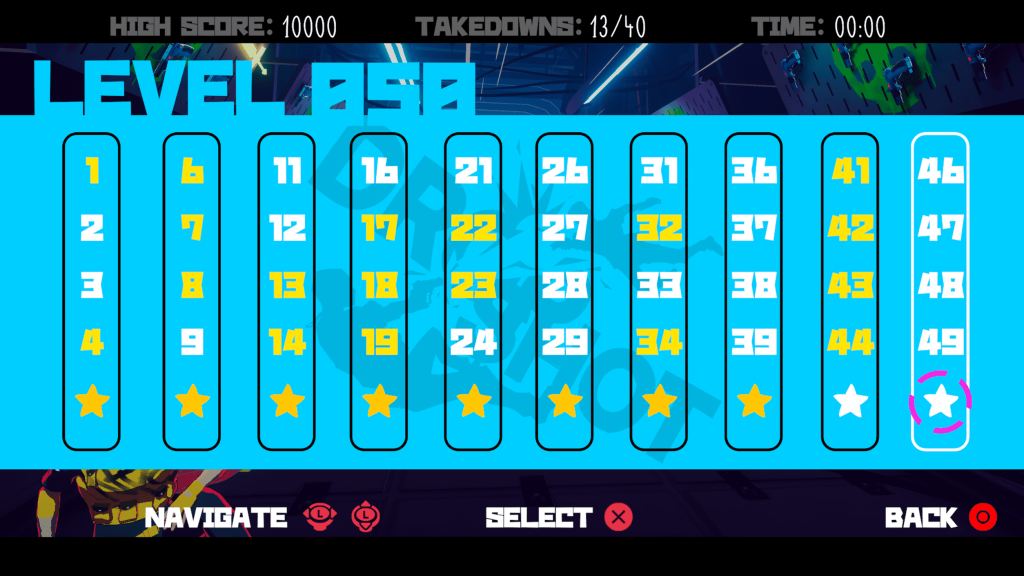 Scoring plays a big role in how DropShot measures success. At the end of each run, you are graded based on completion time, enemies defeated, and remaining ammo, resulting in a letter rank with S+++ sitting at the top. The system encourages replaying levels to chase better results, especially since taking damage twice forces a restart. It creates a clean risk reward loop that fits the game’s arcade roots, even if it does not always provide meaningful incentives beyond personal satisfaction and small unlocks.