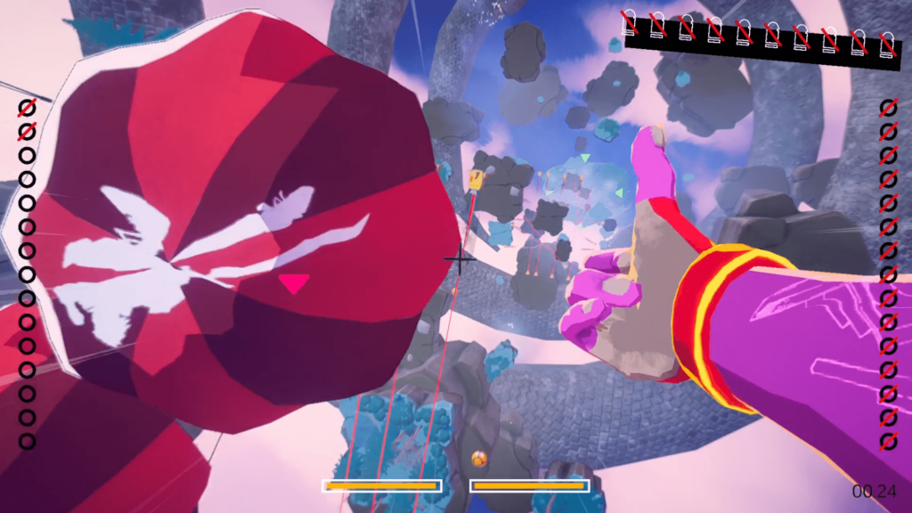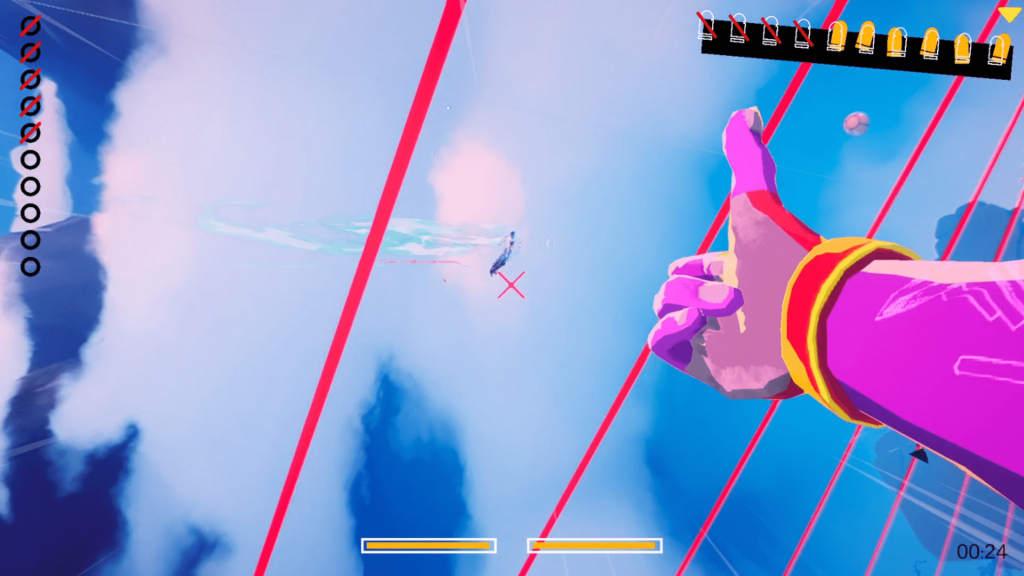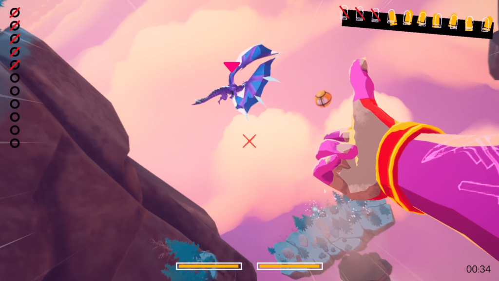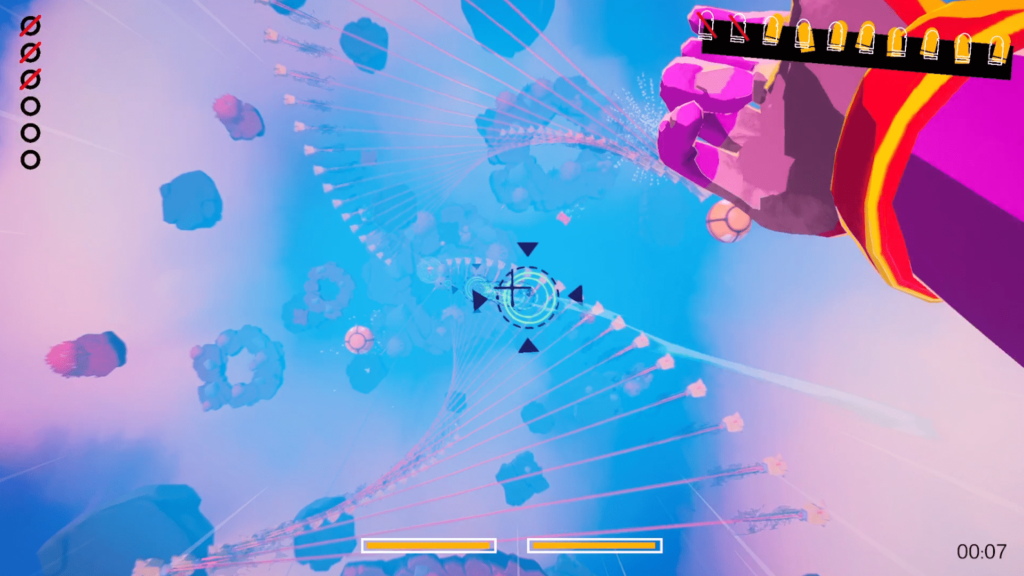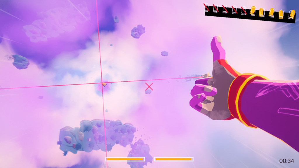 That said, DropShot sometimes feels like a nearly complete idea rather than a fully expanded one. The inability to turn fully around can occasionally be frustrating when enemies slip past you too quickly. It fits the shooting gallery philosophy, but it is hard not to imagine Smoke effortlessly flipping midair to finish a target. Level variety also feels like an area that could be expanded further. More enemy types, greater color variation in the skies and islands, different balloon behaviors, or cosmetic customization for Smoke’s arms could have added extra depth without disrupting the core design. The scoring system similarly feels underutilized. Unlocking new glasses is fun after finishing a certain level, but there is little sense of long term progression or stakes. Ideas like challenge focused glasses that alter visibility or increase difficulty in exchange for stronger abilities feel like natural evolutions that are not quite here yet.