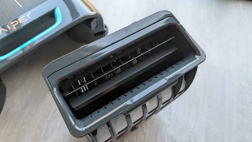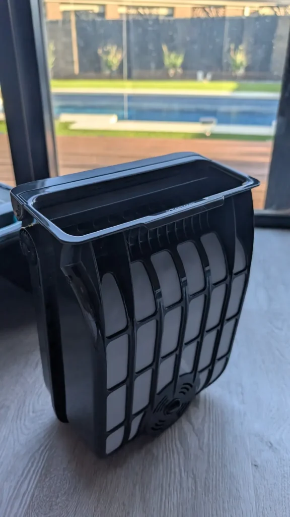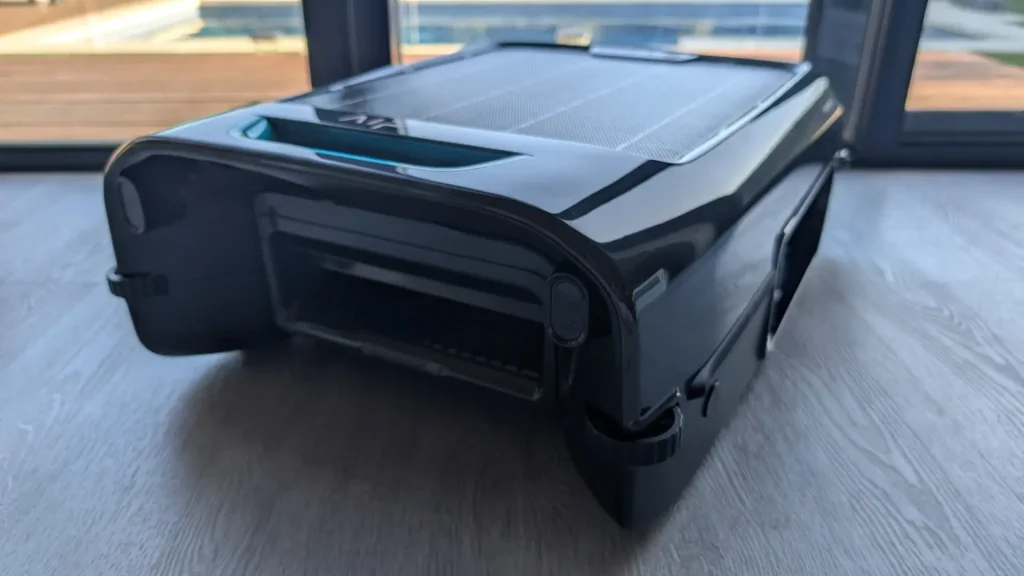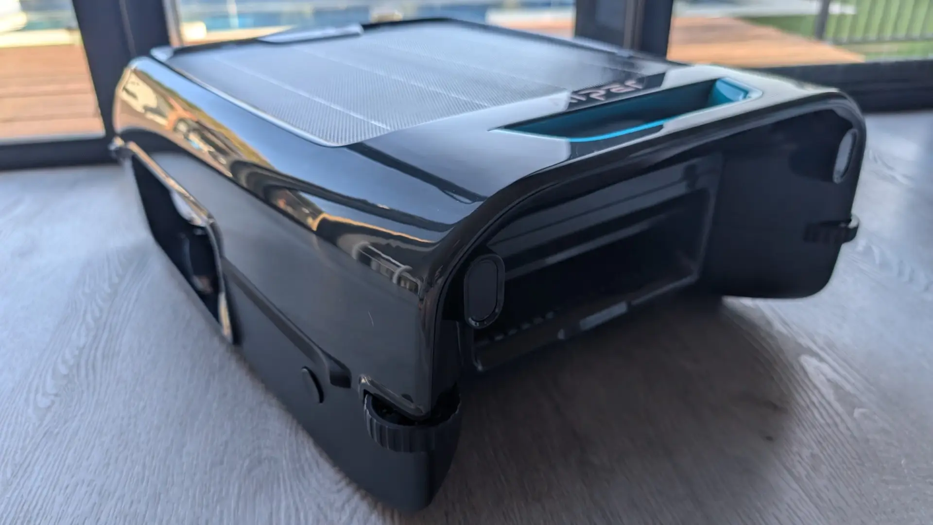 One of the standout features is Aiper’s DebrisGuard system, which works together with an Aquadynamic Baffle to prevent debris from escaping when the skimmer reverses, slows or stops. The intake closes automatically during these movements which ensures leaves, insects and other debris remain securely inside the unit rather than floating back out.