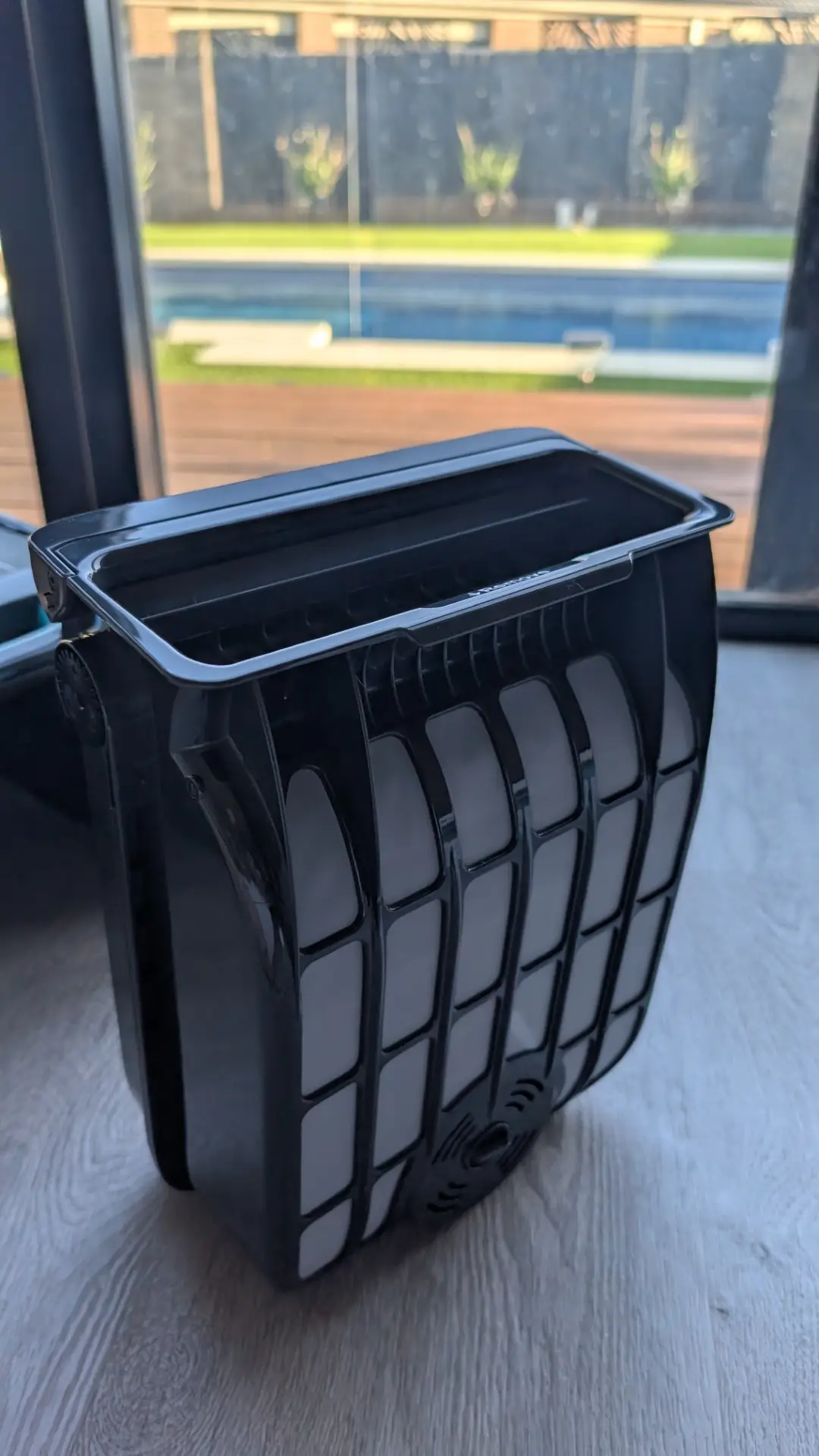The EcoSurfer S2 features a large 4‑litre debris basket, which means fewer emptying trips and longer uninterrupted cleaning sessions. It comfortably handles leaves, gum nuts, insects and general pool debris without filling too quickly. The filtration system uses a 150‑micron fine mesh, allowing it to capture smaller particles such as fine dust and pollen that would normally slip through a coarser filter.