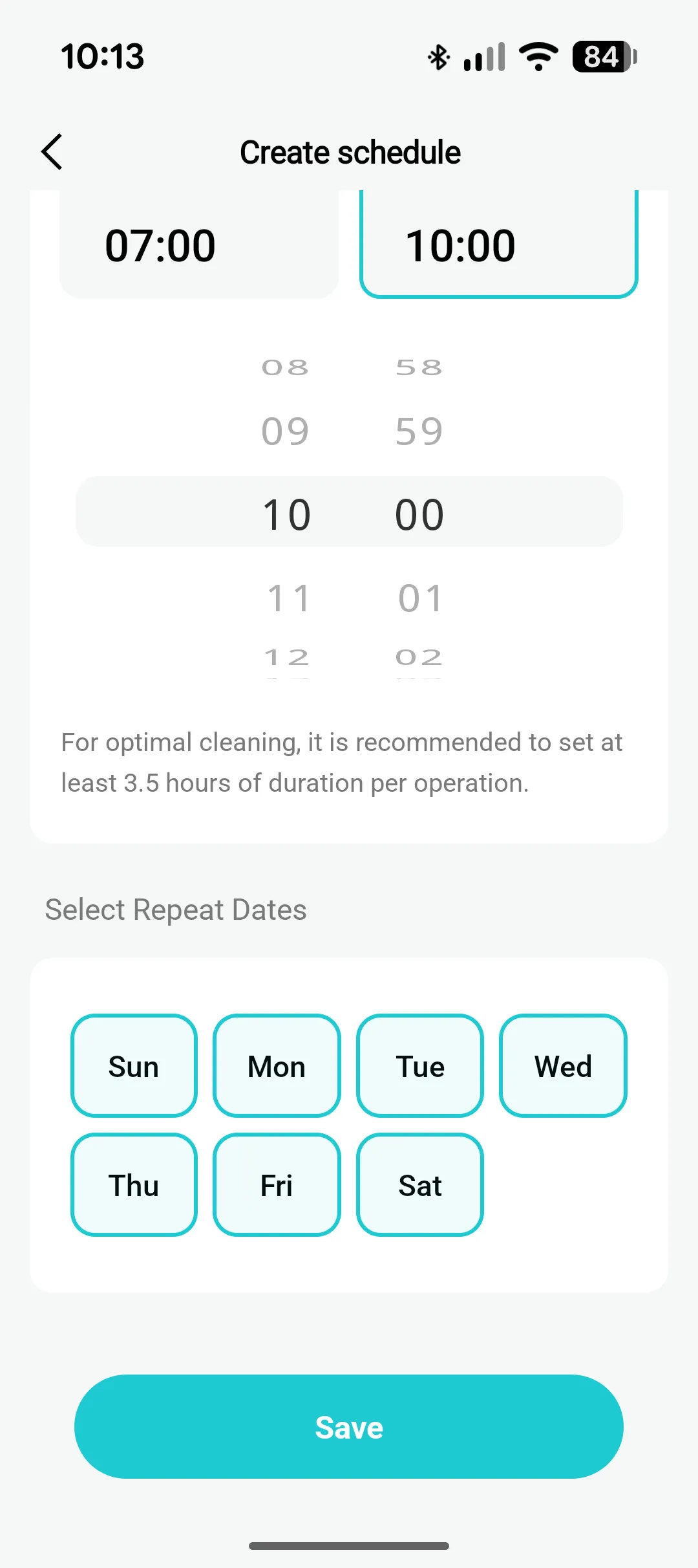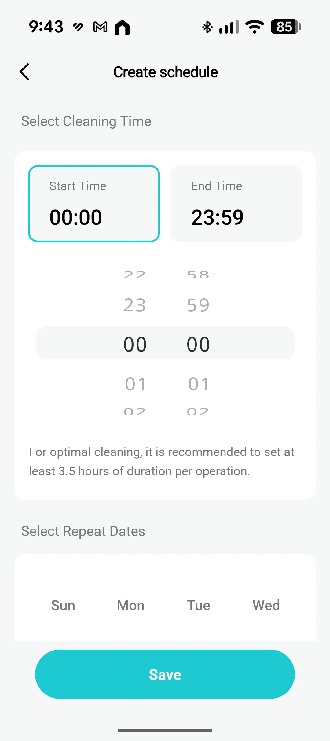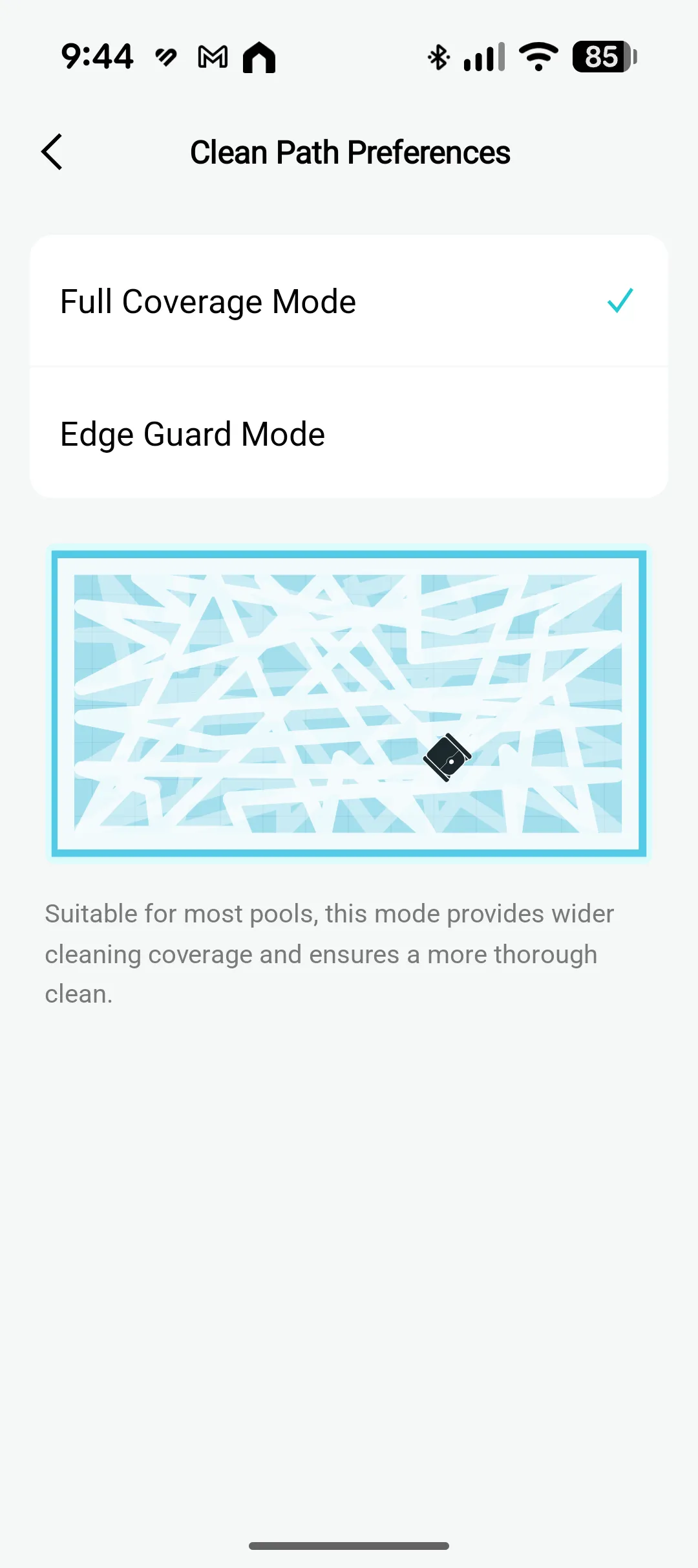 The Aiper app is one of the highlights of the entire experience. Pairing via Bluetooth is quick and simple and once connected you have access to a range of genuinely useful features. You can set custom cleaning schedules, such as running daily from 7am to 10am, or use Eco Clean mode which operates for three hours, rests for three hours and then resumes automatically. The app also allows manual remote control so you can steer the skimmer into corners or areas where debris tends to collect and it provides clear battery and status monitoring.