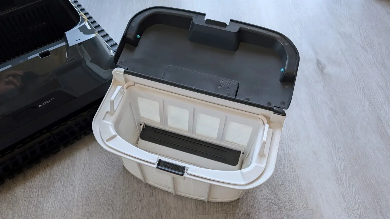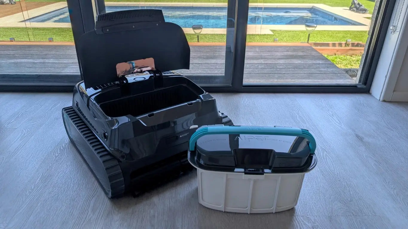 Performance: The Aiper Scuba X1 proves that even a pool that looks clean can be taken to the next level of clarity. In our testing, the unit didn’t just skim the surface , it noticeably enhanced overall water quality, leaving the pool sparkling in a way that photos alone can’t fully capture. One of the standout features is its dual-layer filter system which is a combination of a fine filter and a microfilter ensures that both visible debris and the tiniest particles are effectively captured.