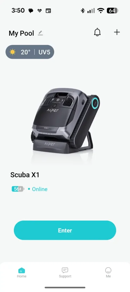 Setup is a breeze – you simply remove the protective tape, put the charging dock together, plug it in and then place the Aiper Scuba x1 onto the dock and wait for it to char. Once charged, you need to download the app, setup an Aiper account and then pair it to the X1 which takes no time thanks to the wizard. The app is very easy to navigate courtesy of its user-interface.