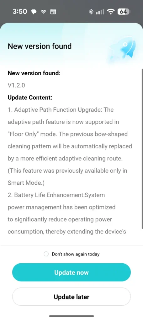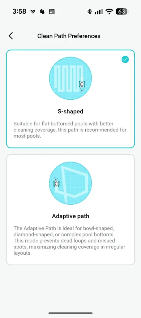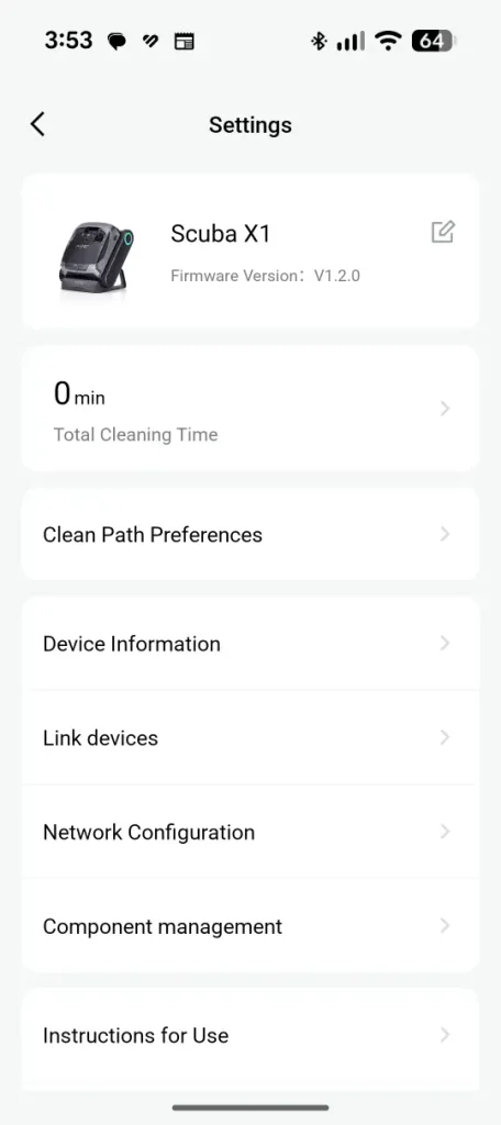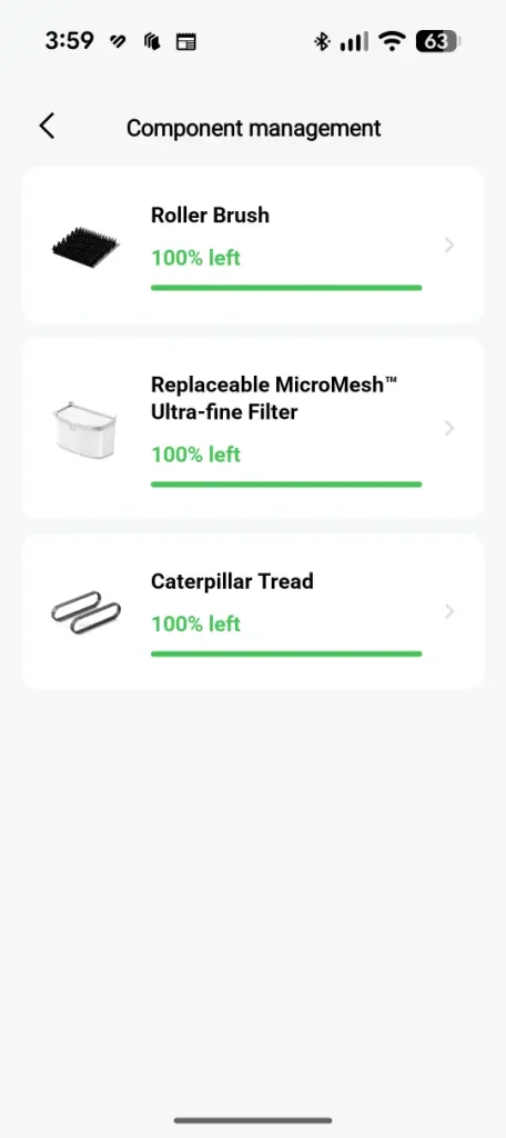 Besides being able to choose cleaning options, it also gives you access to statistics (e.g. total cleaning time), cleaning path preferences (S-shaped vs Adaptive path), battery level and component management that provides you a snapshot of the roller brush, filter and caterpillar tread.