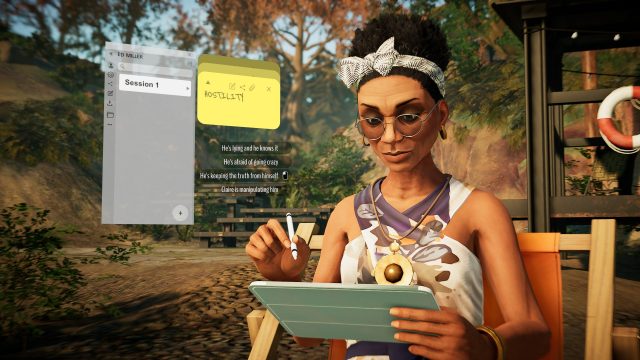 The player will play from the perspective of several characters at different points in the game, unlocking different aspects of the stories and as part of the therapy sessions, which constitutes the finalisation of each part of the story, Dr Lomas must write her session notes, which involve player decisions that directly influence the outcome and dialog.