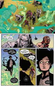 Opposite of bleak, Matthew Wilson (The Avengers) radiates Amazing X-Men #1 with coloring work that feels breathtaking. While the circumstances are dire, it’s fascinating to appreciate the quality of work it took to create a deadly yet hostile environment surrounding the X-Men of the future.