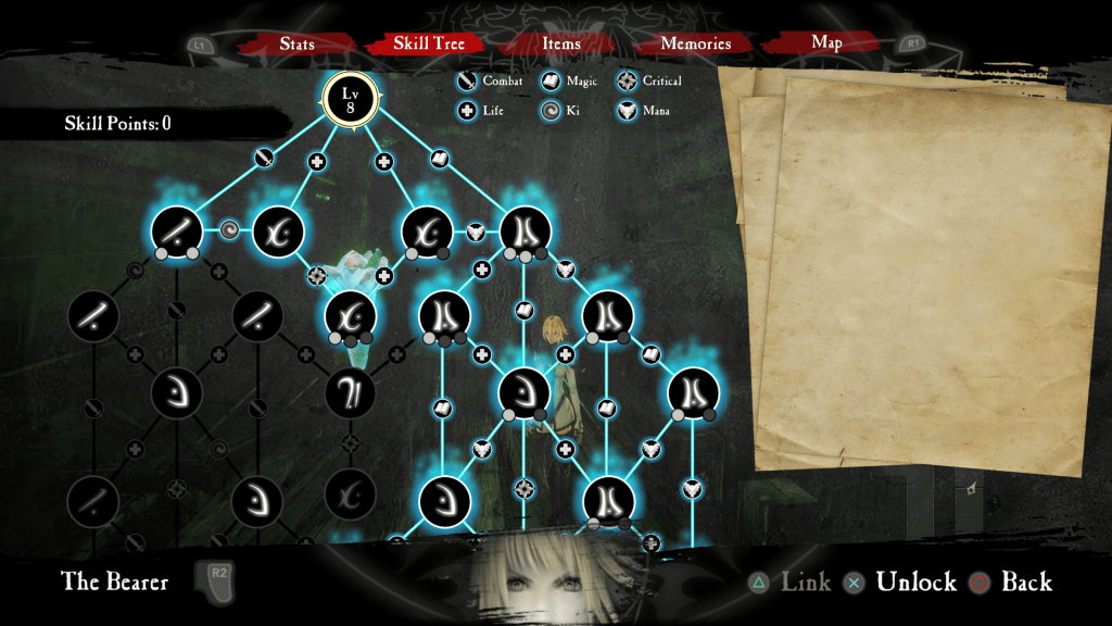 Gameplay remains faithful to the originals. It’s a mix of action RPG, light metroidvania structure, and old-school level design sensibilities, but the remaster’s refinements help it feel more coherent. In Gate of Memories, Combat revolves around the dual-character system: the agile, magic-driven Bearer and the heavier, melee-oriented Ergo. Switching between them mid-combo can turn simple encounters into stylish, high-risk/high-reward engagements, and the remaster tightens their responsiveness. The improved enemy AI, smoother input buffering, and updated special ability timing make battles less chaotic for the wrong reasons and more satisfying when everything clicks. Skill trees offer meaningful customization, itemization still encourages experimentation, and Arcane, the game’s hub of fractured realms, remains an atmospheric place to uncover memory fragments, solve puzzles, and hunt down bosses. Yet the experience is still unmistakably old school. Hitboxes can feel loose, movement remains stiff, and some encounters highlight that this combat system was ambitious but limited by a tiny team. Even with improvements, the feel of the game is undeniably archaic, and while I personally enjoy that early-2010s action-RPG jank, newcomers may find it harder to adjust.