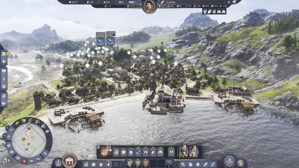 Both ground and naval battles play out in real-time and are visually if not mechanically appealing, mostly coming down to the paper-rock-scissors system of picking the right close-quarters, ranged and siege units (clustered together in groups rather than as individual soldiers on the field) to take out your opponent before they cause too much chaos. I much preferred playing as diplomatically as possible and investing in defense (such as walls and towers) as training military units severely reduces your production workforce, which I struggled with managing in the mid-game. Some of the bigger, late-game battles where you have enough resources to attack with both fleet and land armies do feel appropriately epic, however!