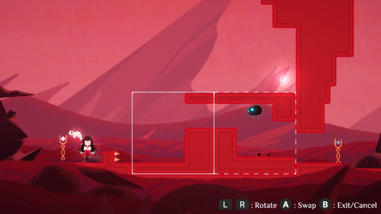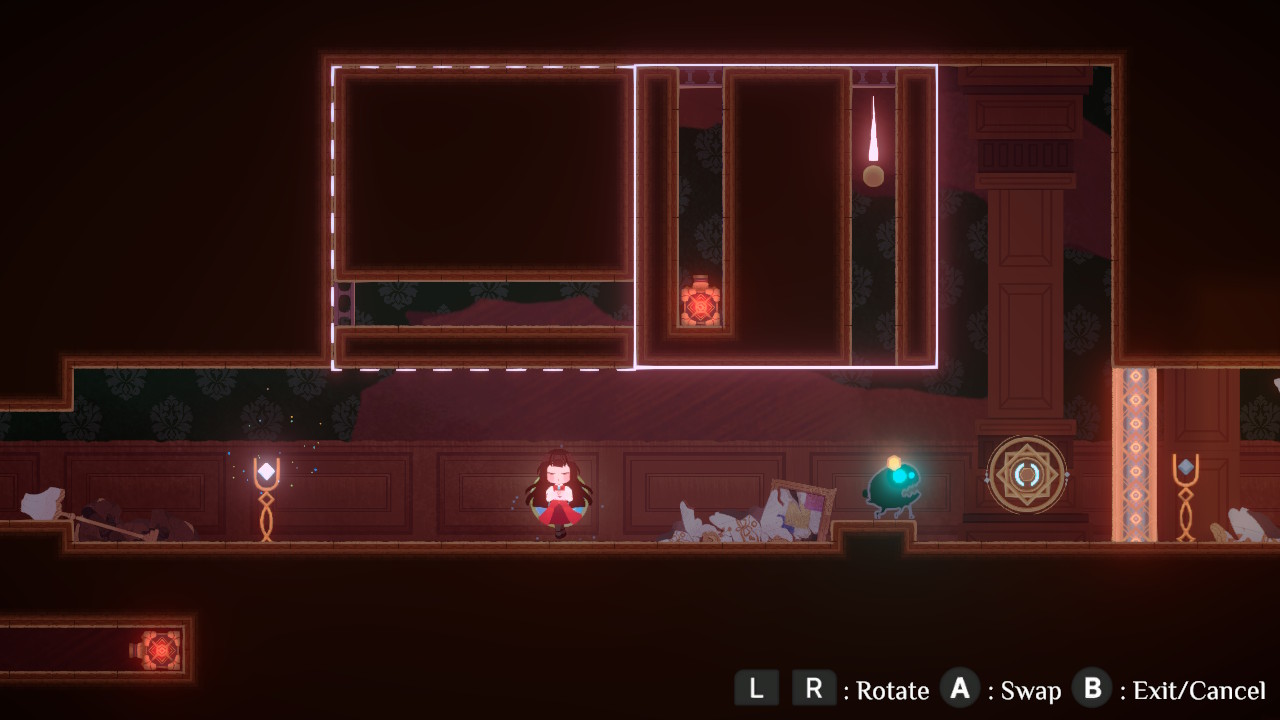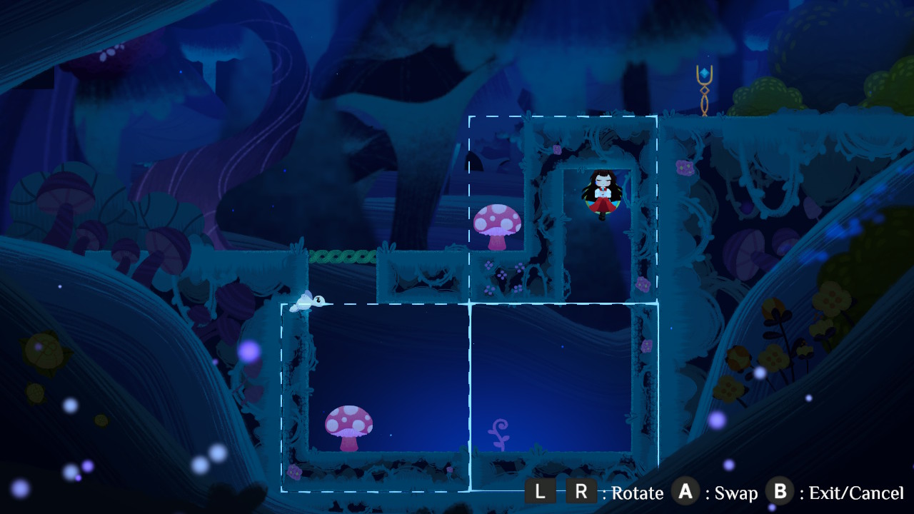Gameplay unfolds across a 2D plane where Lily can run, jump, and interact with a series of clever environmental puzzles. The standout mechanic is her ability to rotate and swap large segments of the level, effectively reshaping the world to create new routes or undo old ones. Early puzzles are approachable and serve as a soft primer by flipping platforms, assembling simple staircases, and collecting keys to open gates, but the complexity escalates elegantly. Before long, you’re juggling bounce pads, timed switches, moving blocks, and interconnected layouts where performing one action sets off a chain reaction that forces you to think a few steps ahead. Later chapters particularly shine, giving you the freedom to experiment and discover inventive solutions rather than pushing you toward a single rigid answer.