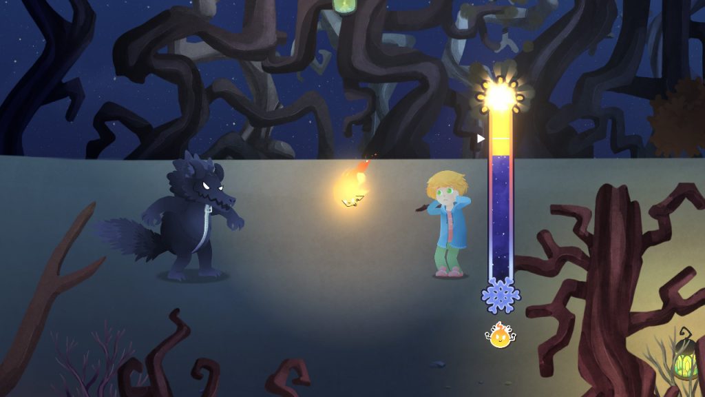 The story begins with Charlie, the series’ returning young protagonist, happily playing with puppies in the park. A sudden storm scares the animals into the woods, leading Charlie on a frantic chase that once again lands him in the magical land of Asfalia. This time, the stars themselves are going out, and Charlie must work alongside a tiny flame named Lily who was born from a fallen star. Your mission is to restore light to the land, encourage Lily to shine brightly, and track down the missing puppies. The setup is cute and age-appropriate, and the friendship between Charlie and Lily adds warmth, though the narrative, as in the first game, sometimes struggles to maintain a clear throughline. Quests like rebuilding a statue of a cat, finding an ice wand, or even playing video games with a talking knife are undeniably silly, but their charm makes the journey worth following.