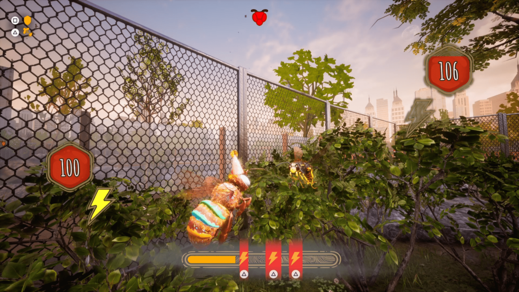 Where The Hive distinguishes itself is in the new post-story building and resource-management layer. After finishing the core campaign, players unlock the ability to construct and customize their own beehive across a network of hexagonal nodes. It’s not a full-blown simulation, but it’s a pleasant addition that extends the life of the game. Gathering new types of resources such as sticks, flowers, seeds, and more feeds into building structures that generate wax, honey, or various bonuses for your bee. Outposts reduce backtracking, perk buildings offer meaningful enhancements, and new smaller zones accessed through hive portals streamline resource collection with atmospheric new locales, including a standout nighttime city area. These systems don’t radically transform the gameplay, but they provide a satisfying sense of progression and a reason to keep exploring after the credits roll.