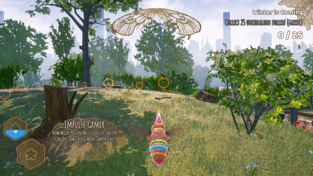 On a technical level, Bee Simulator: The Hive fares quite well. Environments are bright, cleanly rendered, and pleasant to explore, with the PS5 version offering sharper textures and smoother performance than any prior release. Character and insect animations retain a slightly stylized look that fits the game’s approachable nature, even if some NPC animations and crowd behaviors appear a bit stiff. I did run into a fair amount of pop-in, with trees occasionally snapping between textures in a way that was surprisingly jarring and disappointing. Outside of those moments, though, the presentation held steady and I didn’t encounter any other visual issues. The soundtrack by Mikołaj Stroiński remains one of the game’s highlights and is calming, airy, and more intense during combat or urgent missions. Sound effects are crisp, though not always consistent, and the voice acting that is a quirky mix of dramatic sincerity and comedic exaggeration, will be charming to some and distracting to others.