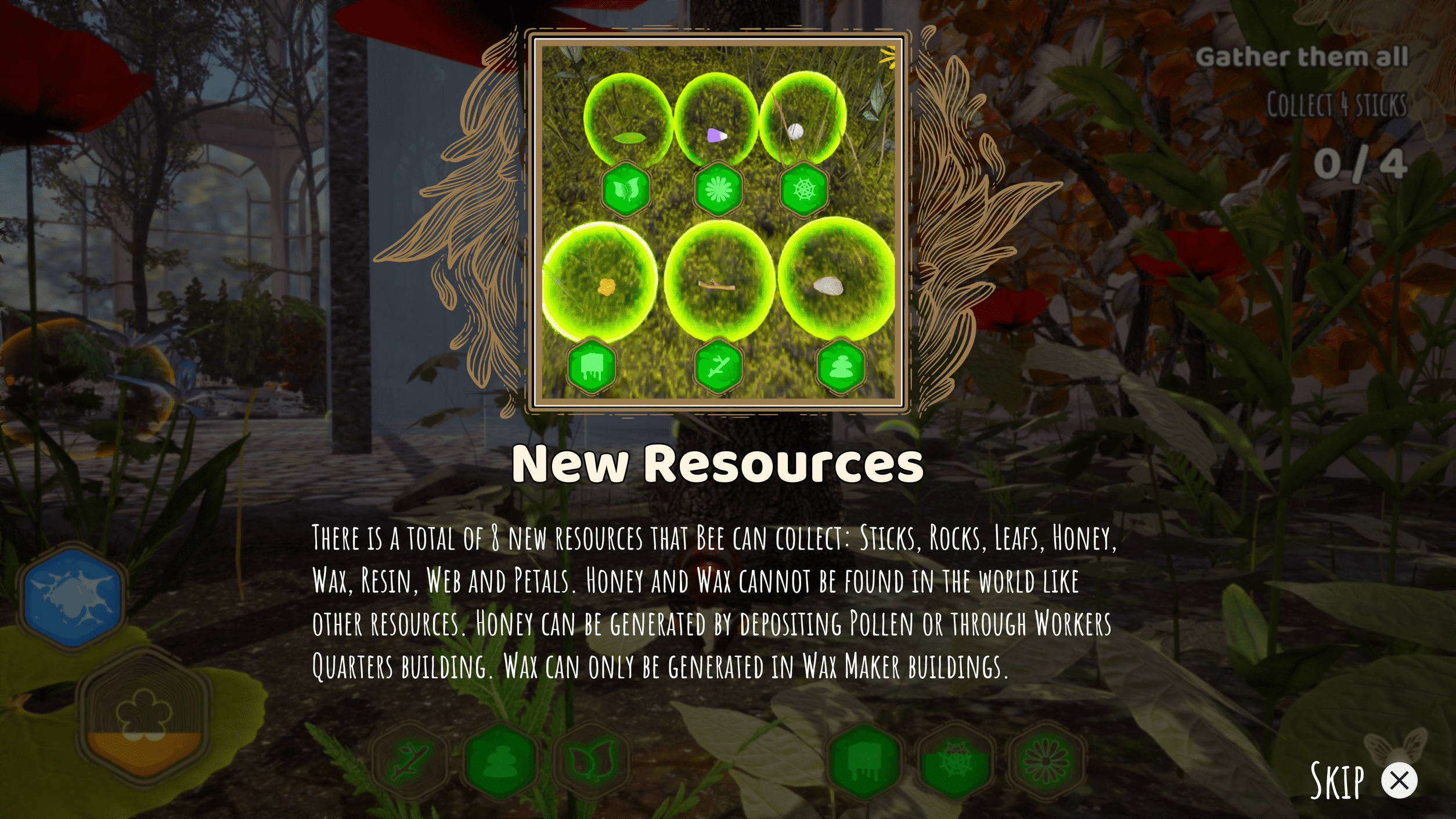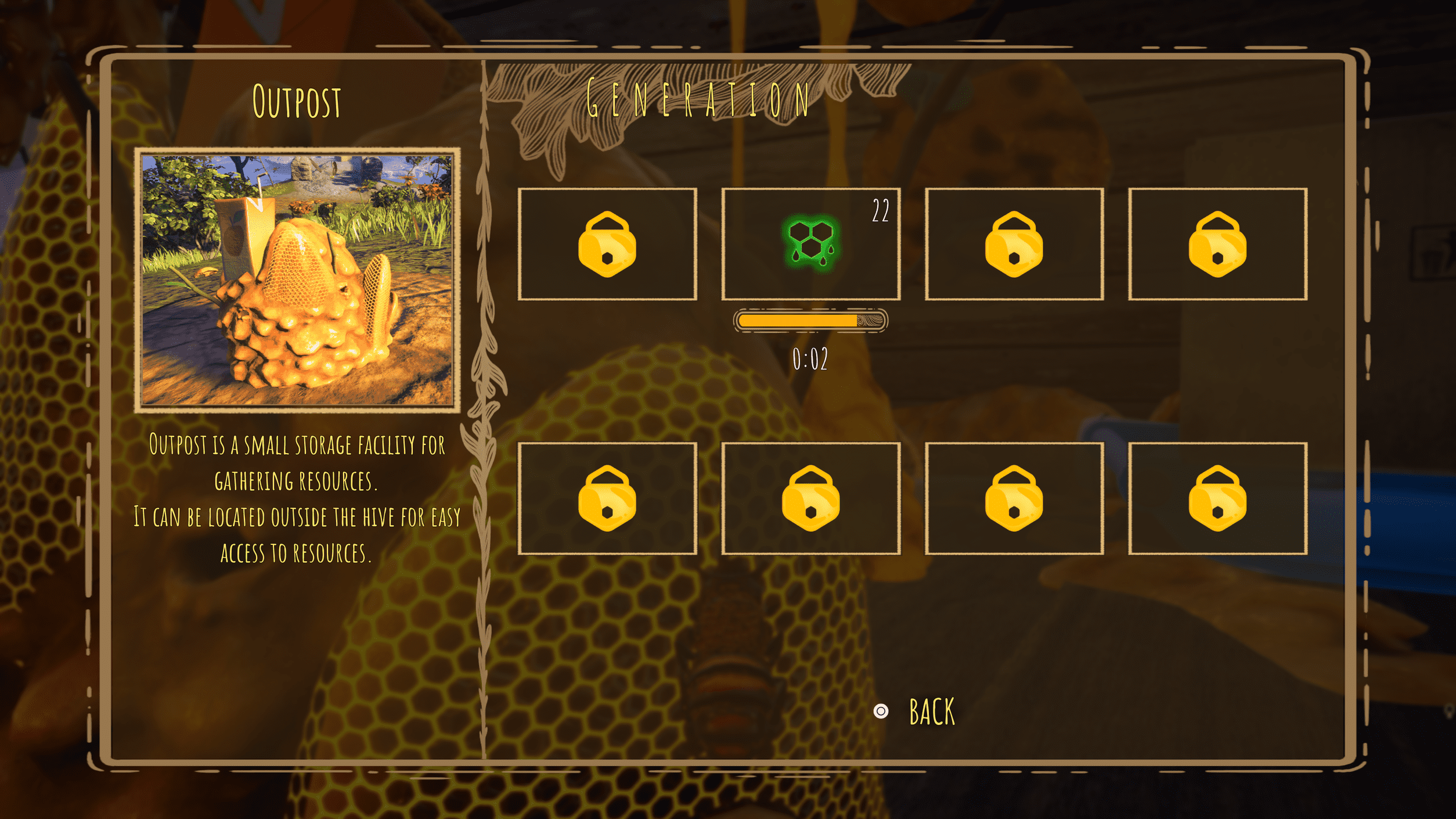 Where The Hive distinguishes itself is in the new post-story building and resource-management layer. After finishing the core campaign, players unlock the ability to construct and customize their own beehive across a network of hexagonal nodes. It’s not a full-blown simulation, but it’s a pleasant addition that extends the life of the game. Gathering new types of resources such as sticks, flowers, seeds, and more feeds into building structures that generate wax, honey, or various bonuses for your bee. Outposts reduce backtracking, perk buildings offer meaningful enhancements, and new smaller zones accessed through hive portals streamline resource collection with atmospheric new locales, including a standout nighttime city area. These systems don’t radically transform the gameplay, but they provide a satisfying sense of progression and a reason to keep exploring after the credits roll.