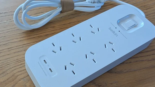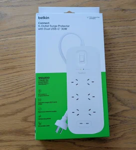 Let’s cover the features. Belkin have described this particular Surge Protection range as described locally in Australia for local weather conditions given the risk and hazard of electrical storms, particularly in the north. The product I tested, the SurgePro 6-outlet surge protector, advertises 650 joules of surge protection and Belkin have highlighted their efforts to ensure your devices are protected from excess heat and energy in their list of technical specifications… and whilst I’m not sure 650 joules would be enough if your home was struck directly by lightning, at an $89.95AUD price tag with a $50,000 warranty I think most people would find it sufficient. As titled, yes it has 6 outlets – and more crucially 2 USB-C outlets at 30-W a piece.