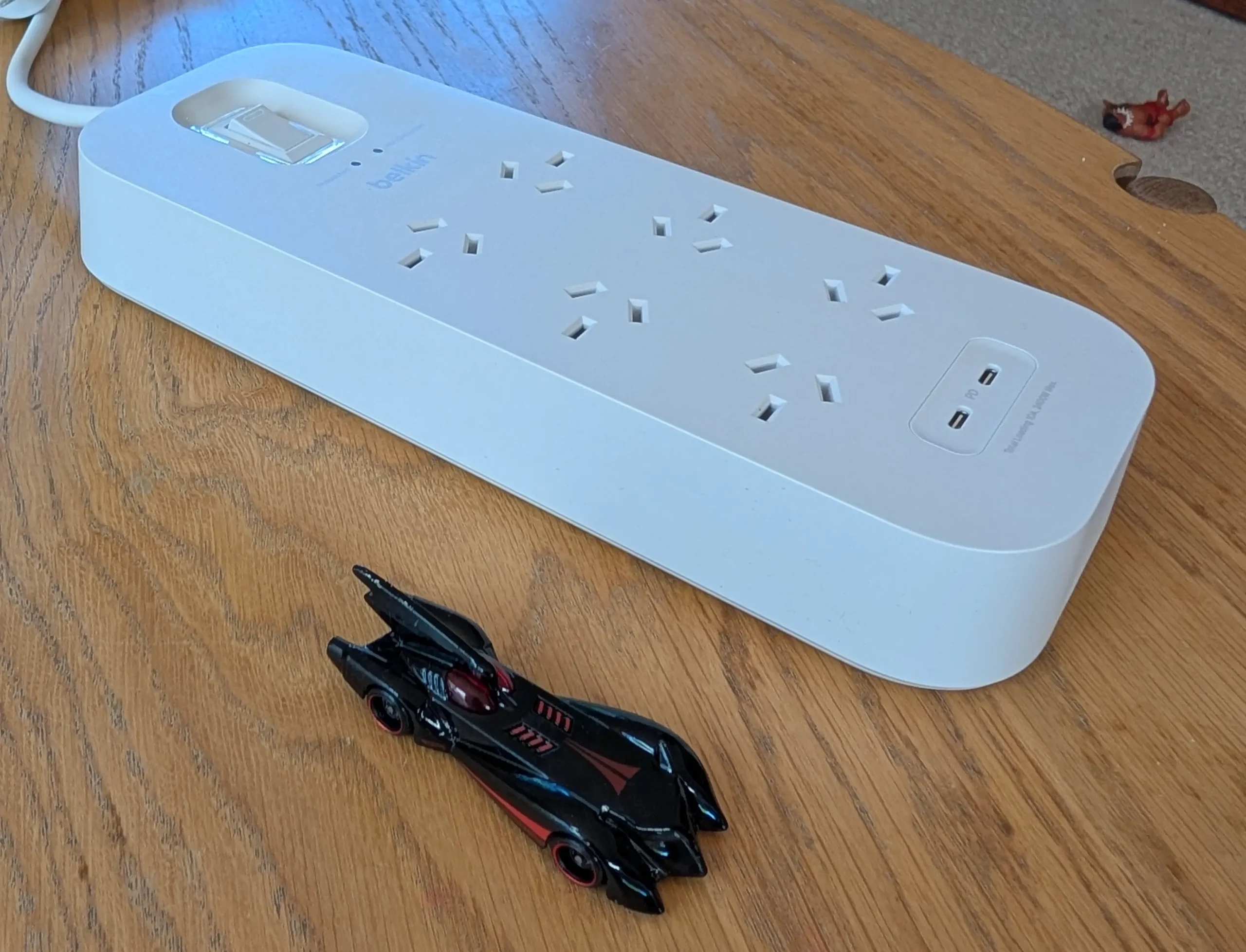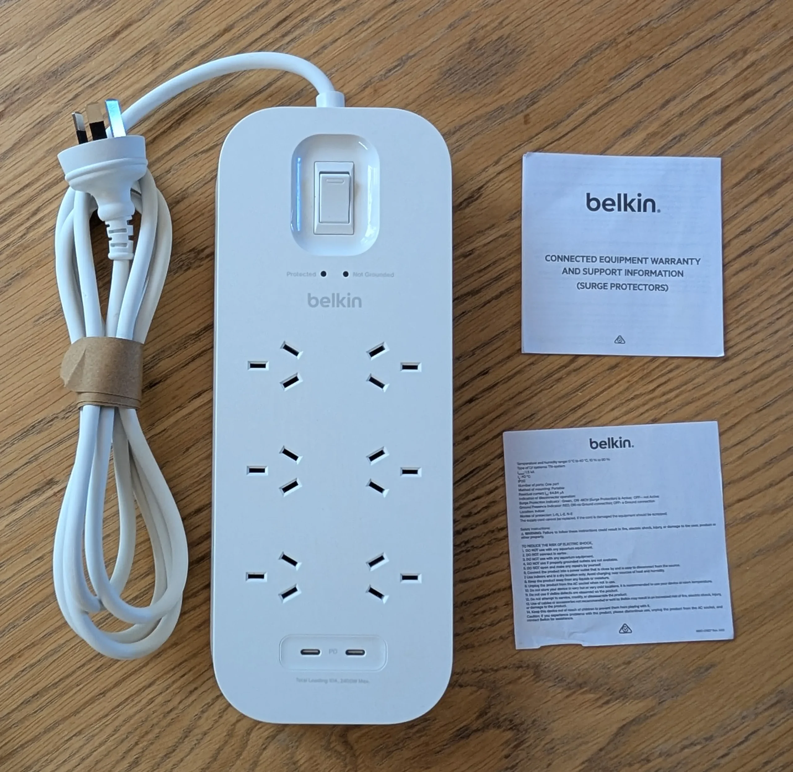 I was lucky enough to get a chance to try Belkin’s ‘SurgePro’ 6-outlet surge protector. What piqued my interest is Belkin’s advertised ‘Connected Equipment Warranty’ for up to $50,000 – so long as you ensure the indicator light is working and you use the board as intended, Belkin will cover repair or replacement costs from a power surge. Again, just like cable management, this might not seem important… however since I moved homes in February we have already had 3 flooding events from 3 ‘once in a decade’ storms; the government has already offered disaster relief twice; and more relevant to surge protection, we’ve had to call out the electrician for repairs after a surge knocked out power to half the kitchen, and fried an air conditioner. With that context I reckon most of you will understand why I was keen for the opportunity to give the SurgePro range a go when Belkin offered.