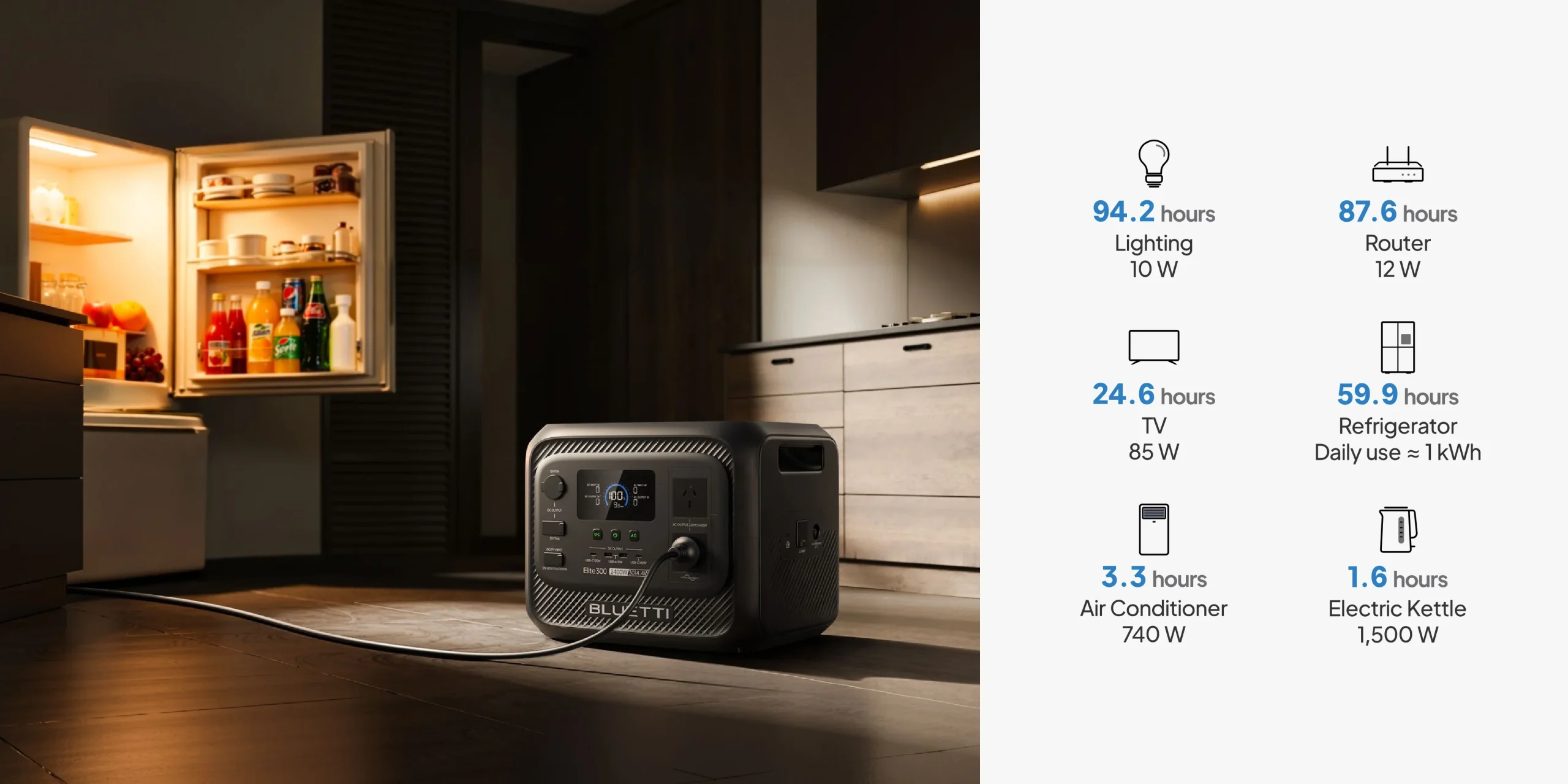 As to what can the BLUETTI Elite 300 run? Basically, everything and this company has put together a great little infographic about some of the many different items it can run plus times!