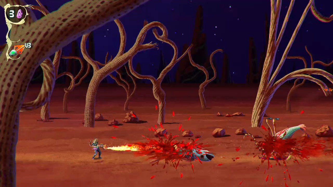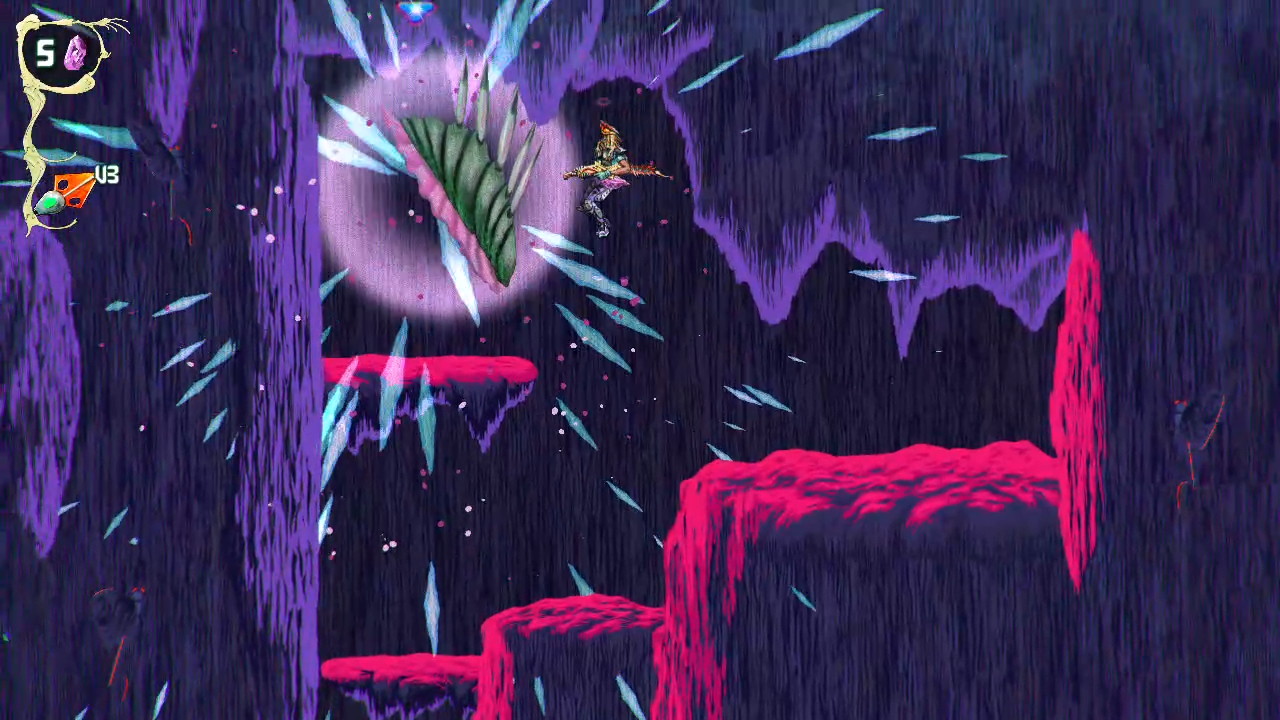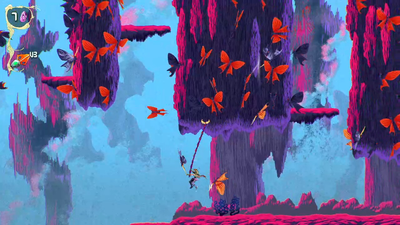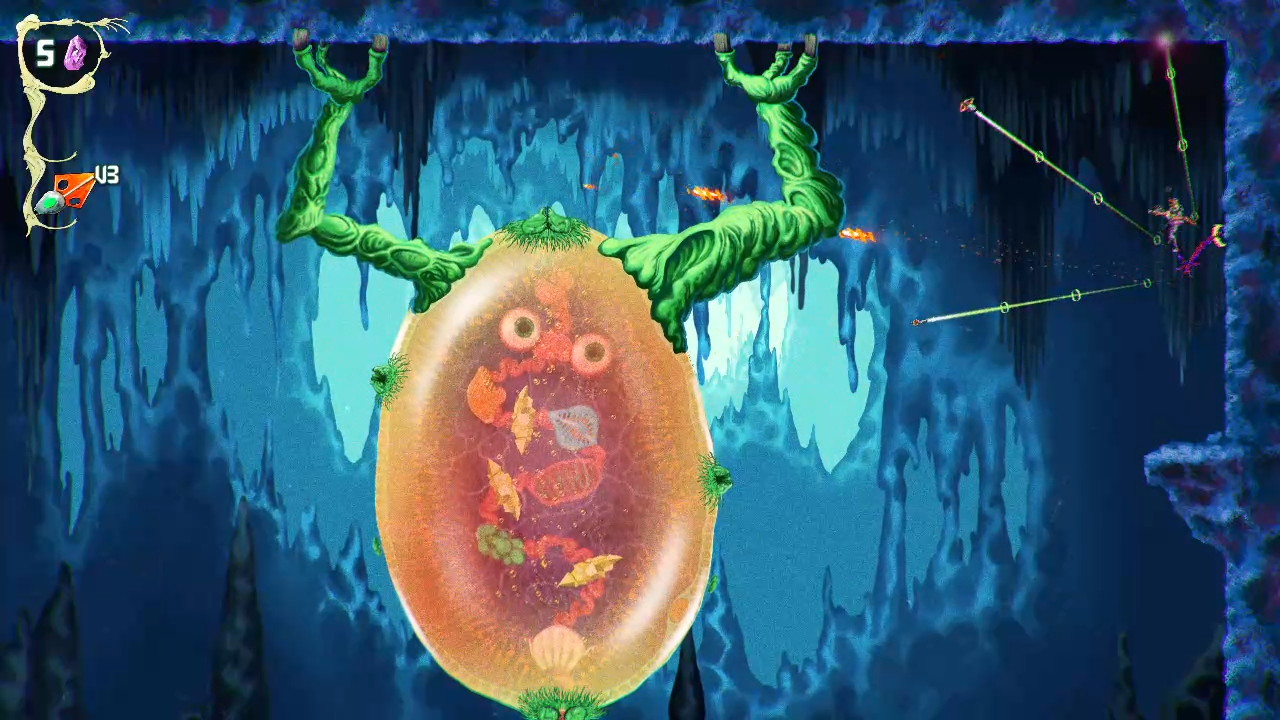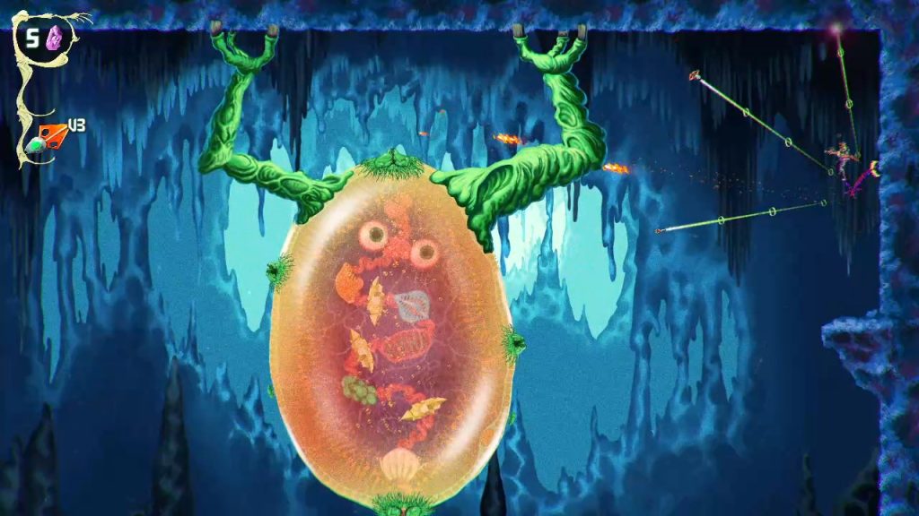 There are also ability upgrades in the form of parasites that expand how you move through the world. Some let you float across hazardous terrain, others give you offensive options like explosive attacks or mobility upgrades like a double jump. These additions tie back into the exploration loop, encouraging you to return to earlier levels with new tools and uncover paths you couldn’t reach before. Even with these elements, the game never feels overwhelming. It stays focused on momentum and experimentation, letting you approach situations in different ways without overcomplicating things.
