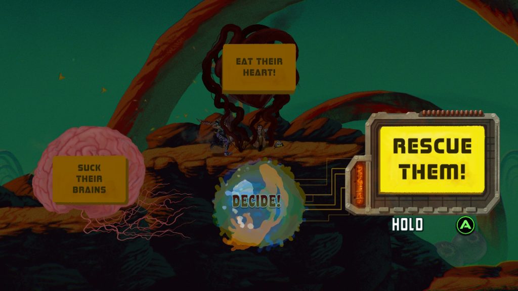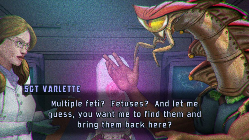 The story leans fully into its strange premise and benefits from doing so. Earth is being overrun by alien bugs spawned from Star Spores, and things are going about as badly as you’d expect. You play as Sgt. Jesse Varlette, who fights the invasion, but becomes part of it when a parasite crashes onto his head and bonds with him. It keeps him alive, but not in a comforting way. His body is changed, his humanity is questionable, and removing the parasite would mean death. In exchange, you gain the ability to control the ChainStaff and stand a chance against what the game calls The Encroachment. The narrative is weird, sometimes dark, and often surprisingly funny. The tone stays light enough to keep things moving, but there’s an underlying tension in how your choices shape who Var becomes.