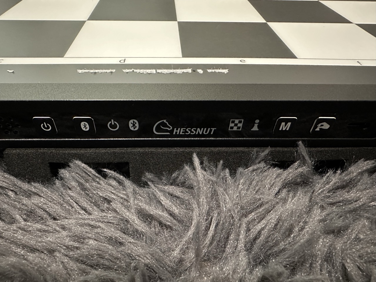 To be clear: this is cool but anything but a gimmick. Everything about Chessnut Move screams class and would pass the sniff test of any traditional player. To begin, build quality is stellar. The board is of substantial weight, being real wood and with a gorgeous finish all around. Pieces – while plastic in this edition – certainly don’t feel as such. They are solid, sport moderate detail, and feel natural in the hand during movements. The satisfying clunk of placing a piece is certainly here. Piece motors (which reside on each piece’s bottom) are well integrated into the overall form factor and are unnoticeable when moving a piece. The board is charged via an included USB‑C cable, and the pieces collectively on a tray via a second included USB‑C. Color‑coded lights indicate charge status.