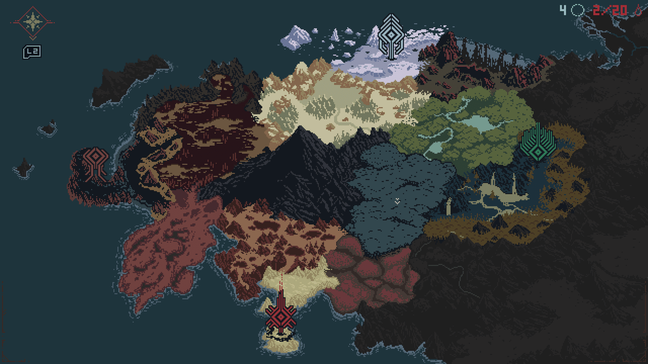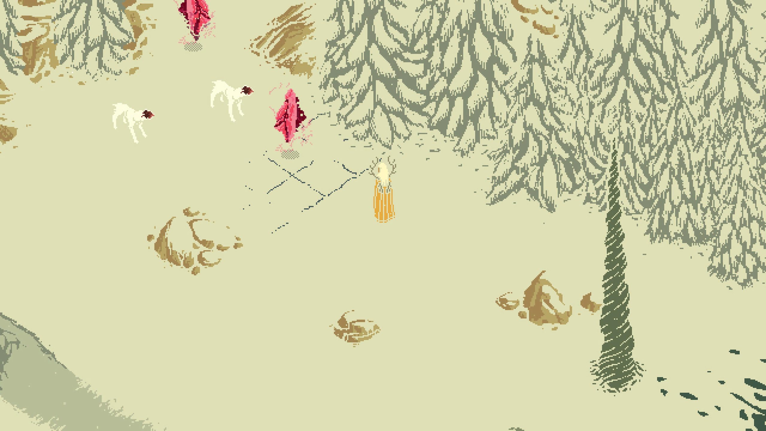 Visually, Death Howl is captivating. The pixel art is minimalist but incredibly expressive. Each region leans on a distinct color palette, and transitions between areas have a dreamlike flow that makes the Spirit World feel unstable and otherworldly. It avoids the loud neon style that a lot of indie pixel art falls into and instead uses restrained tones and painterly touches. It genuinely captures the feeling of ancient nature. You can almost feel the cold air and damp reeds.