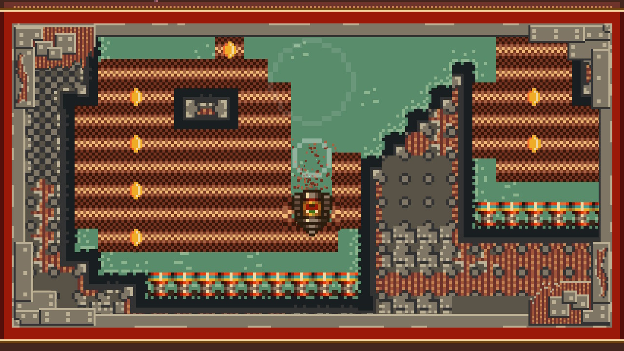 As the game progresses, new mechanics are layered in thoughtfully. Bumpers placed along walls allow Quad to ricochet in controlled ways, becoming essential tools for navigating tighter spaces. Later stages introduce pick-up projectiles that can be fired at switches to open laser gates, drill vehicles that let you burrow through dirt terrain, and warp gates that instantly reposition you across different sections of a level. None of these mechanics feel extraneous; instead, they build naturally on the game’s central movement concept. Collectibles like coins and flies are scattered throughout each stage, and collecting everything earns you a satisfying checkmark, subtly encouraging replay and mastery. Completionists will find plenty of reason to revisit levels, as grabbing every item often requires careful planning, deliberate backtracking, and near-perfect execution.