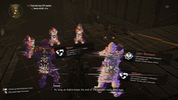 The encounters just that little bit harder because of my faulty controller, meaning I couldn’t heal without using Division abilities. An example of such encounters, Theo Parnell, who in his fight, creates holograms of himself and other combatants on the field. By making you waste time determining the right targets it creates a tricky fight.