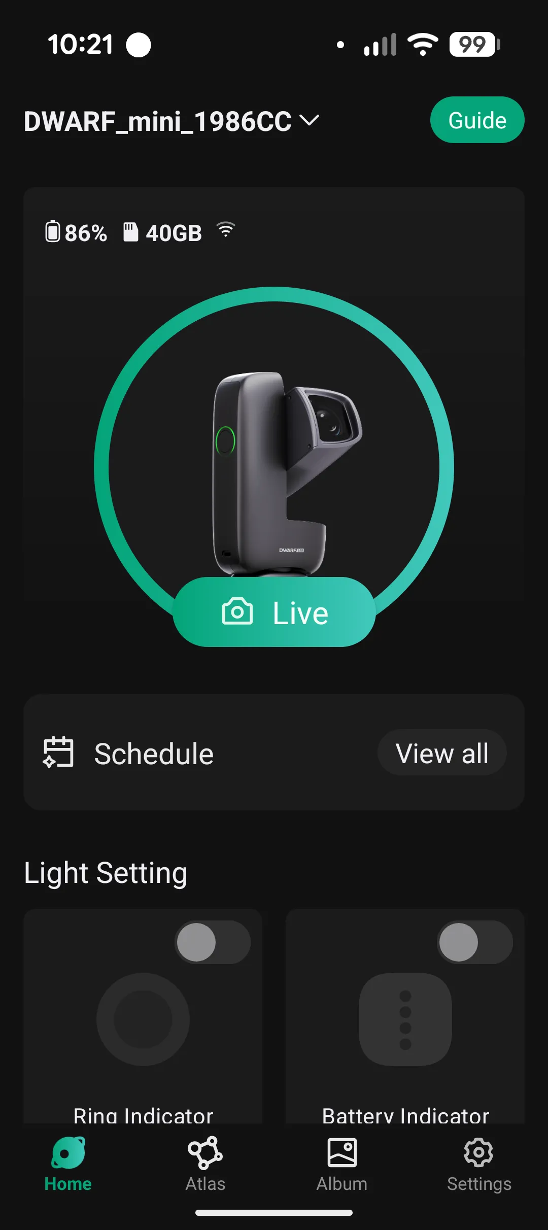Setup is simple and takes only a few minutes. Place the Dwarf Mini down, power it on, connect via Wi‑Fi and the app guides you through calibration. The star alignment routine is almost entirely automatic and thanks to the built in celestial atlas, you don’t need any astronomy knowledge — just tap a target and the Mini handles the rest. Dwarf also have recommended targets and you can even favourite your personal favourites.