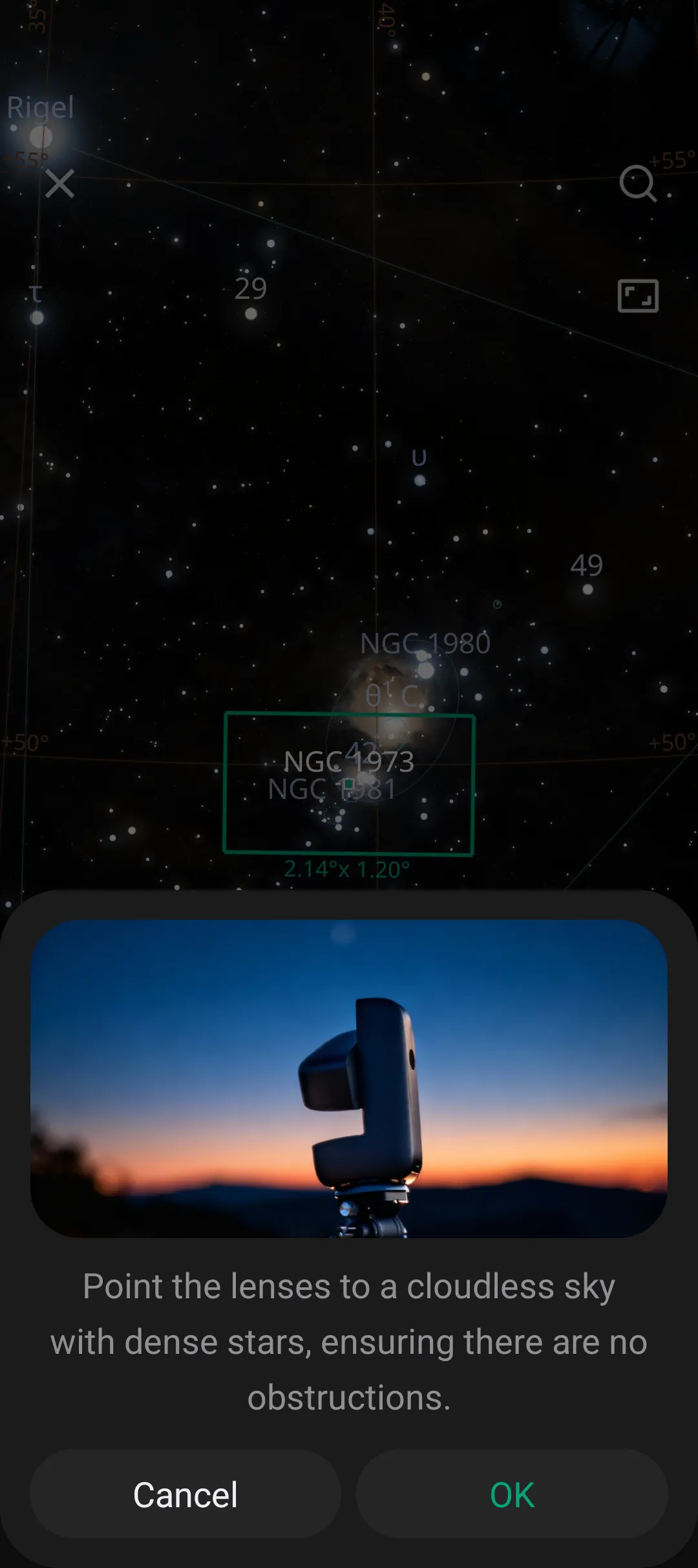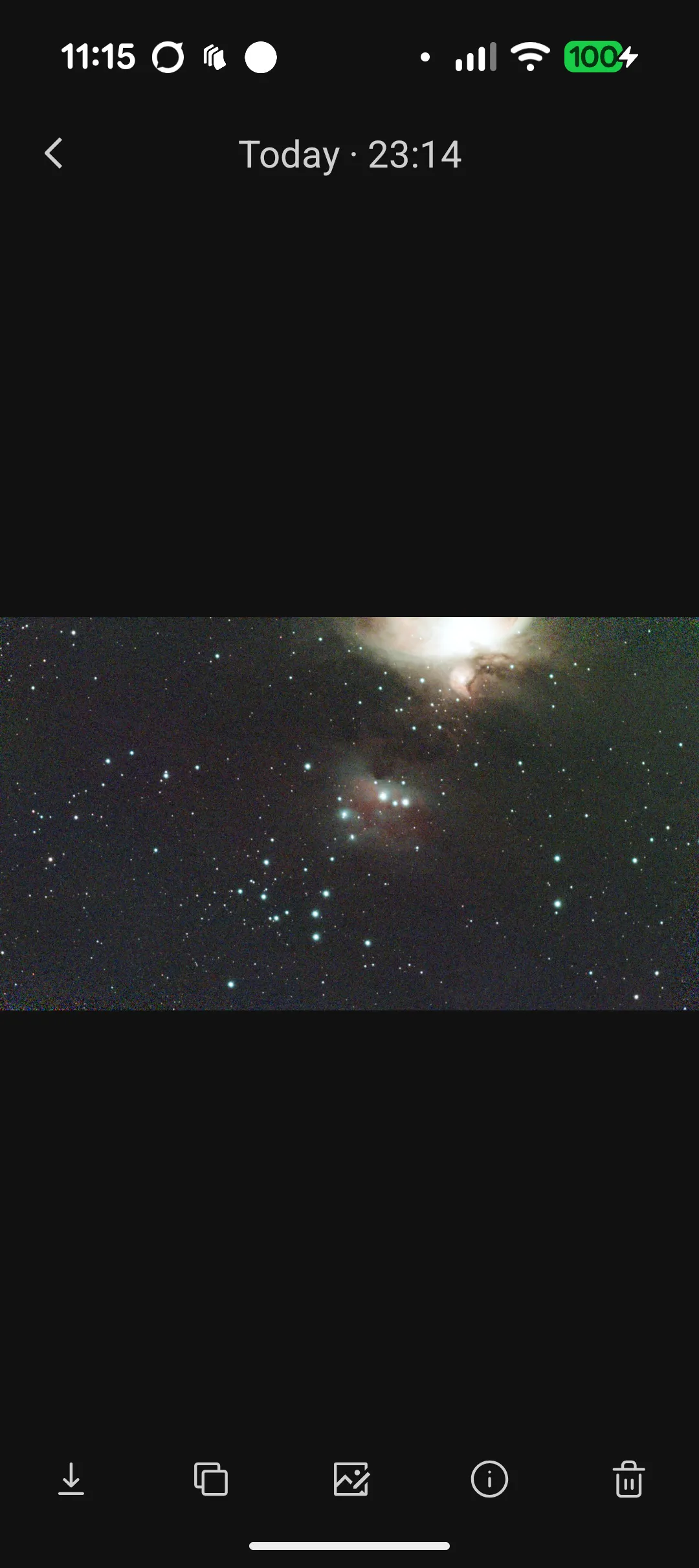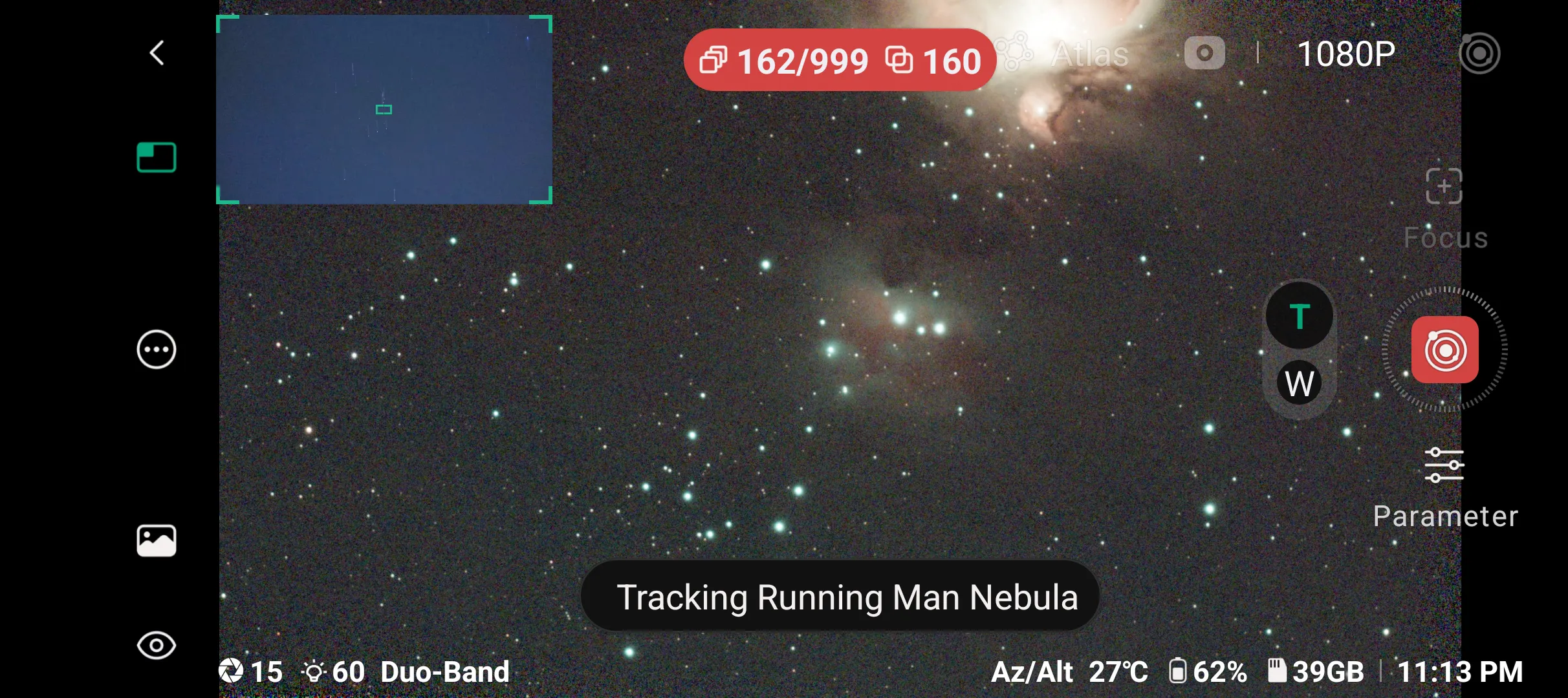 And here is the Dwarf app in action with the Running Man Nebula.