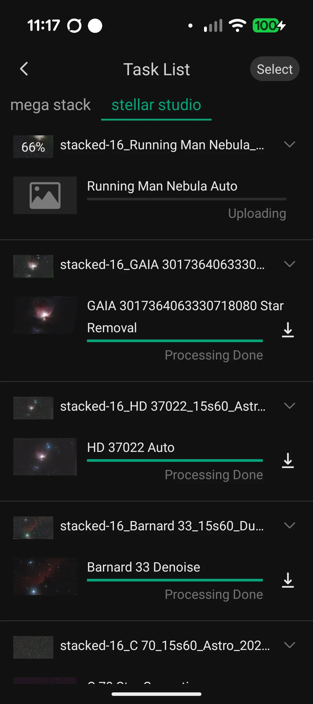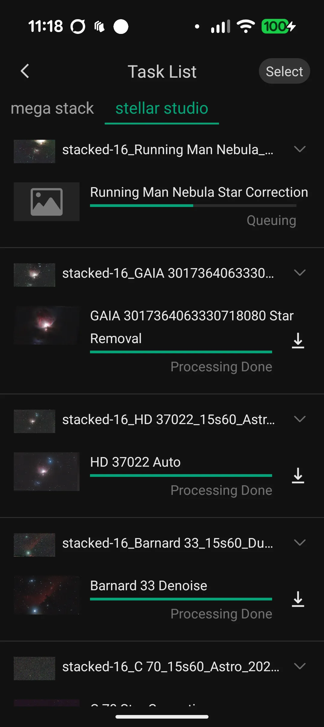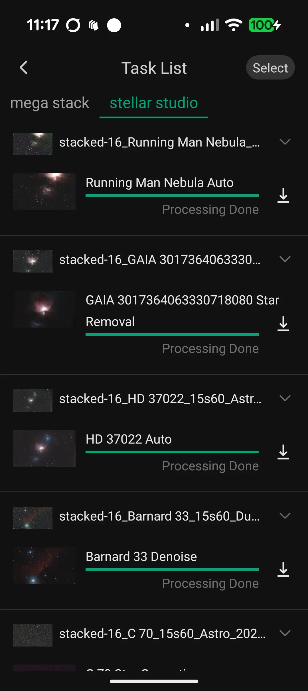 And here is the Dwarf app in action with the Running Man Nebula.