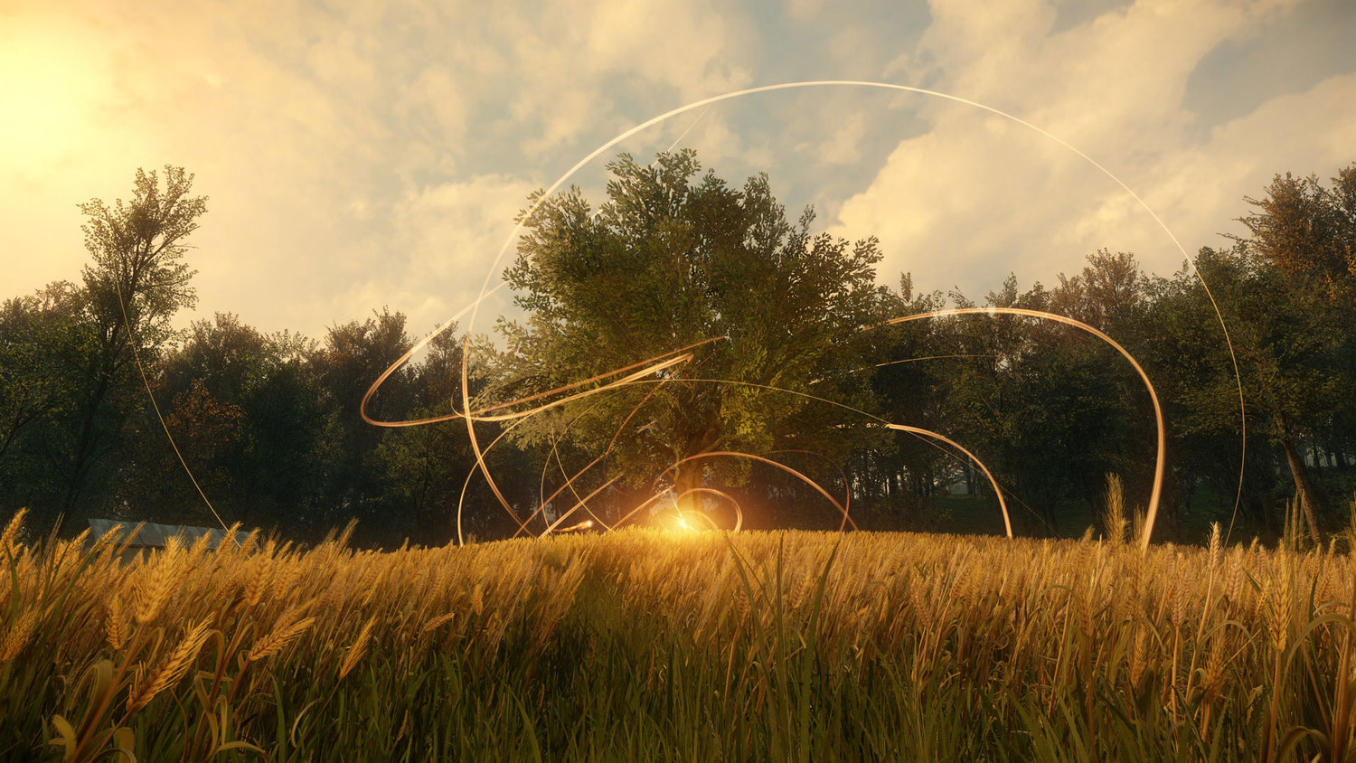 Further narrative points are revealed through interacting with floating orbs of light that flit around the village; once close enough, you can “tune” into these orbs by tilting the controller until a small scene will play out, the glowing light taking on rudimentary forms of those who once populated the village.