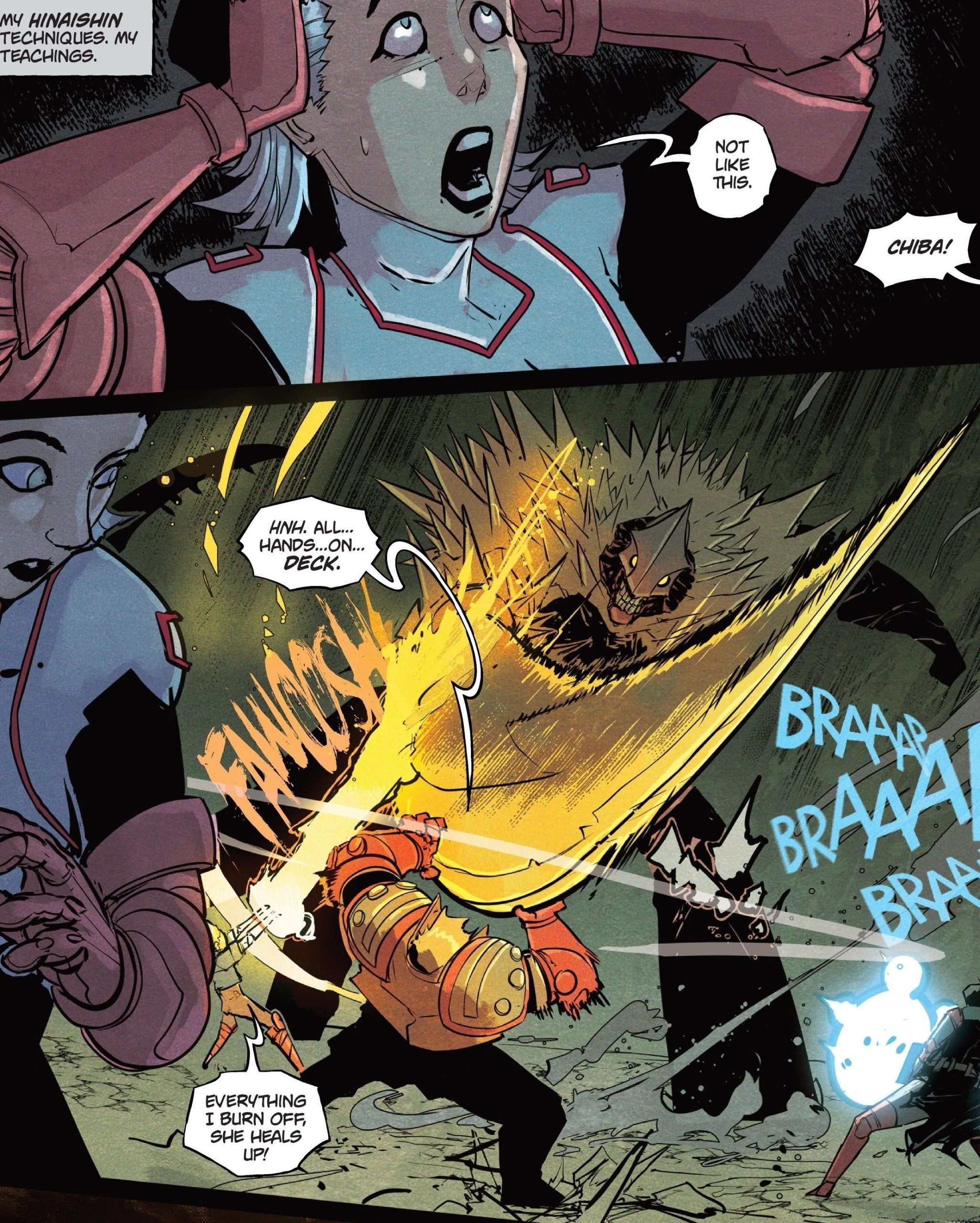 Visually pleasing artwork, Nikola Čižmešija (Tim Drake: Robin) stands out with fantastic expression and execution. Čižmešija hits every expectation of how a story stays entertaining in Godzilla #6. The line work itself is a sight to take a moment and appreciate the level of dedication required to construct together. The panels Čižmešija aligns showcase the importance of each scene in the comic book. Additionally, cover art speaks a lot of volumes about what’s happening in the comic book, but it still leaves readers questioning what’s happening. A job well done.