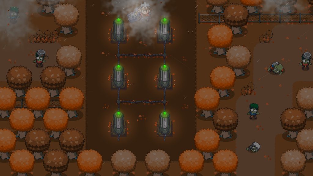 Visually, Gridz Keeper adopts a bright, cartoony art style that is immediately readable and clearly aimed at a broad audience. The repairman sprite is appealing, and the generators are easy to distinguish at a glance. However, environmental variety is minimal. Every level takes place outdoors, usually surrounded by trees, with the occasional zombie added to the scenery. Over the course of 50 stages, this repetition becomes noticeable. A handful of alternate settings such as rooftops, abandoned factories, or city streets could have gone a long way in keeping the presentation fresh. The audio design is similarly modest. The background music is serviceable but generic, rarely drawing attention to itself. Sound effects fare a bit better, with the audible “ding” of activating generators providing a small but satisfying bit of feedback during play.