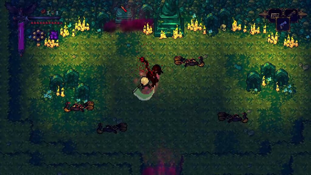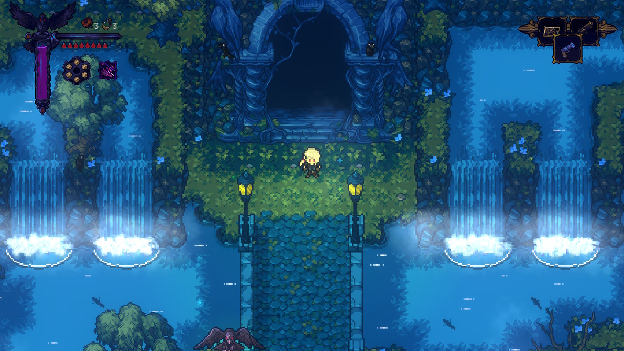 Visually, the game does a great job capturing its dark fantasy tone. The 16-bit pixel art is detailed and expressive, with strong use of lighting and shadows that reinforce the oppressive atmosphere. Despite the overall grim tone, the environments are varied and memorable, taking you through graveyards, swamps, ancient ruins, and snow-covered mountains. Each area feels distinct, and the art direction consistently supports the mood the game is going for. The audio complements this well, with a soundtrack that enhances the tension and sense of scale without overpowering the experience. The involvement of Hiroki Kikuta is evident in how the music adapts to different moments, and the sound design, especially during combat, adds a satisfying weight to every hit.