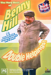 | Benny Hill is the legendary British comedian who inspired countless comedians all across the globe from Europe, Australia and the United States. Although his style of humour was quite risqué and sometimes childish, it was enjoyed by more than 140 million viewers worldwide that made the Benny Hill Show an English institution. The Very Best of Benny Hill DVD features over 90 minutes from original television series that spanned over 30 years. The DVD features two special programs that include "Benny Hill's Greatest Hits" and "The Crazy World of Benny Hill" which feature some of the funniest moments of the Benny Hill Show. One of the major problems with humour is that it can date fairly quickly and what was funny twenty years ago may not even get a smile today. This is not the case for the Very Best of Benny Hill but quite the opposite, this 90 minute DVD is guaranteed to have you in stitches. One sketch that comes to mind is when Benny Hill is spying on a girl next door when his wife approaches and says "if you keep that up, you'll get a headache", Benny shrugs it off and says "no I won't" when his wife hits him in the head with a rolling pin. The look of Benny Hill is priceless! The majority of sketches on the Very Best of Benny Hill use visual comedy that must be seen to be appreciated. Benny Hill has easily one of the cheekiest and funniest looks of any comedian and you are instantly drawn into his world of humour. With extremely funny humour, scantily dressed dancers and the Benny Hill theme of "Yackety Sax", how could you not enjoy this DVD? The video quality of the Very Best of Benny Hill contains the original 4:3 aspect ratio of the television show that appears to have been cleaned up for DVD. For a show that is almost twenty years old, the video quality still holds up today. The DVD also features Dolby Digital 2.0 for some great sounding music and special effects that is really a trip back down memory lane. When it comes to extras, the Very Best of Benny Hill features a wide variety of extras that include production notes, biographies, photo galleries, a sketch selection and Umbrella propaganda (the company that released this DVD) I would recommend Benny Hill to anyone who loved the original television show and proves that Benny Hill is still King of comedy. - Andrew B | The Very Best of Benny Hill Features | - Production notes