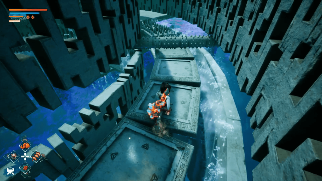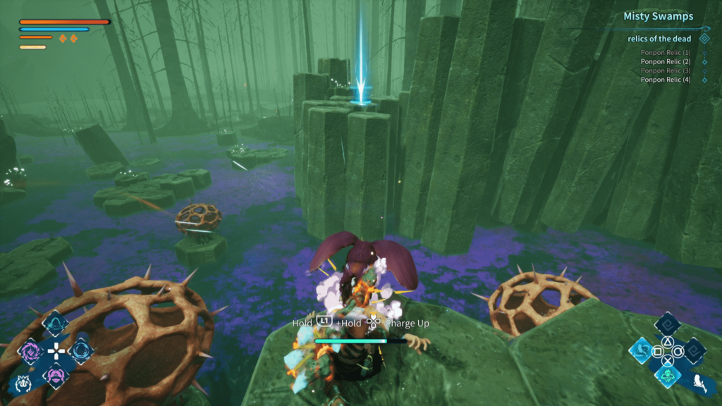 Movement takes some getting used to. Kaku can sprint, but combining that with jumps often sends him leaping farther than intended; an issue in a game full of cliffs. His standard jump also has an awkward delay before lift-off. These quirks are manageable with practice but contribute to occasional frustration, especially during precise platforming sections. Everything else, from dodging to camera control, feels serviceable once you adjust, though the game could’ve benefited from tighter responsiveness overall.