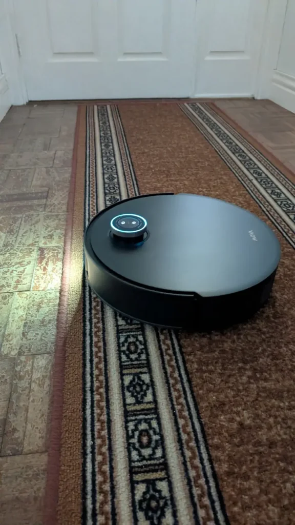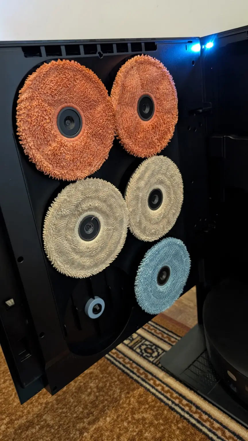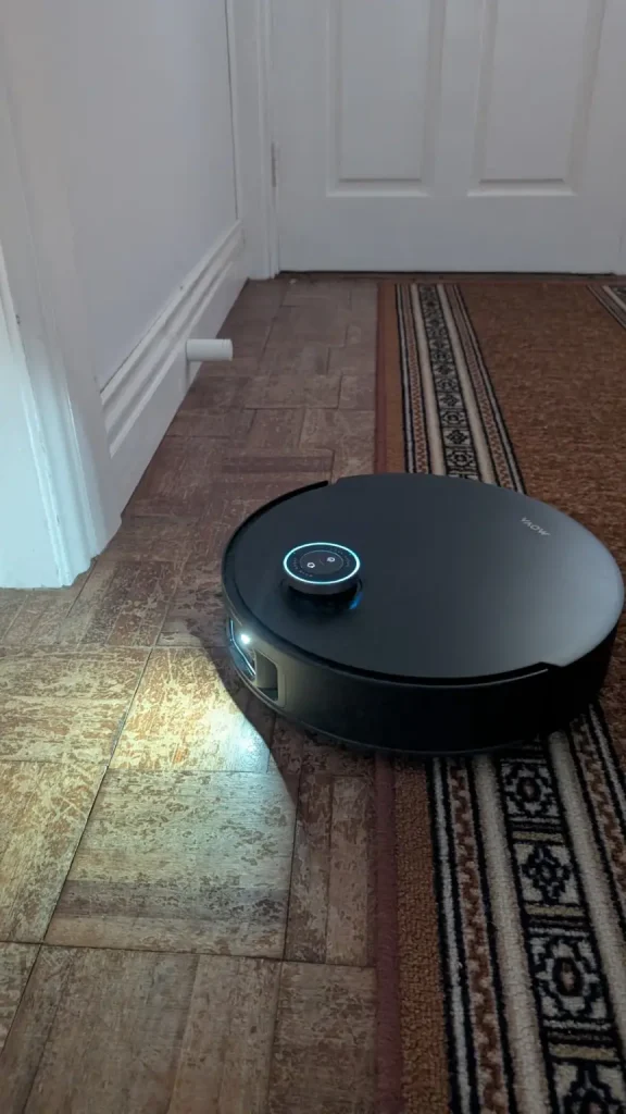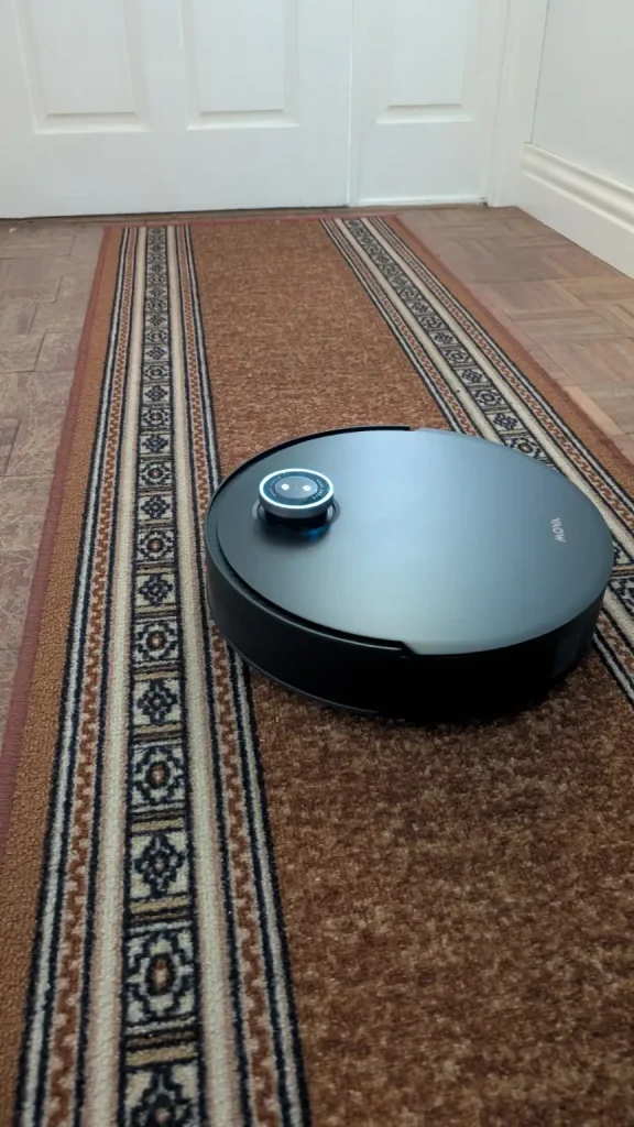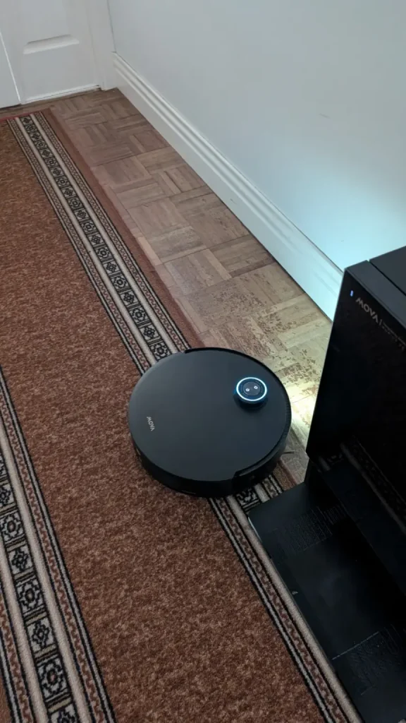 In everyday operation, the Mobius 60 performs well as carpets are left free of embedded dust thanks to its suction retention system which maintains airflow even when tackling larger debris while hard floors are polished with streak free results from the rotary mop system that adapts pressure to the surface. The MopSwap Hub ensures the correct pad is always engaged without manual intervention and the RGB AI navigation combined with the onboard camera means the robot rarely misses areas or becomes confused by complex layouts. Maintenance is simple, mop pads are automatically washed and dried in the base station and the dustbin can be emptied with minimal effort while regular rinsing of the water tank along with occasional filter checks keeps the system running efficiently.