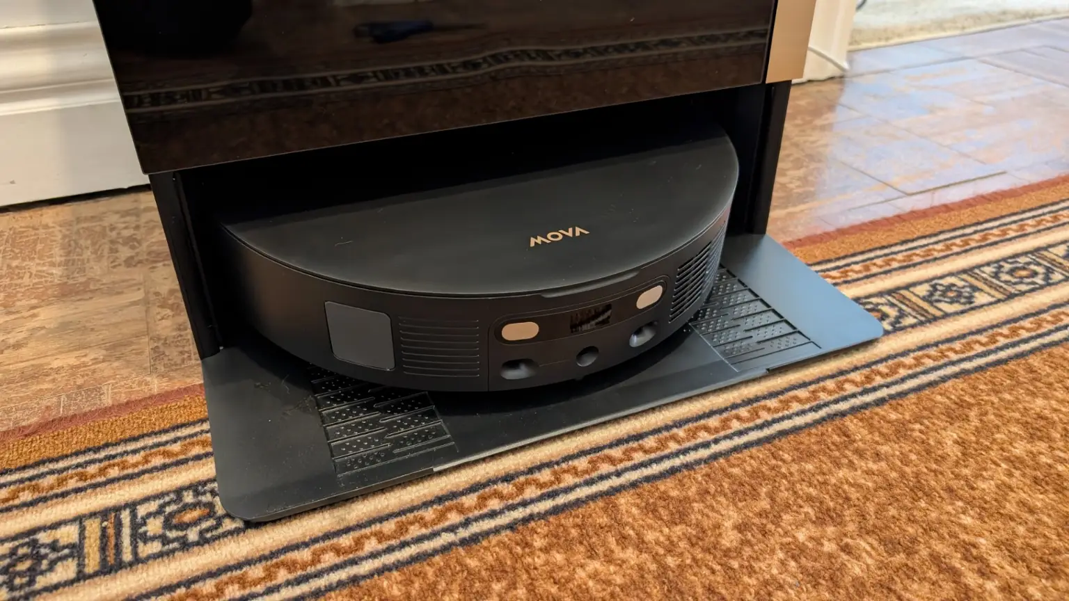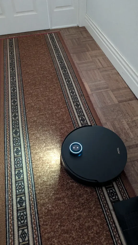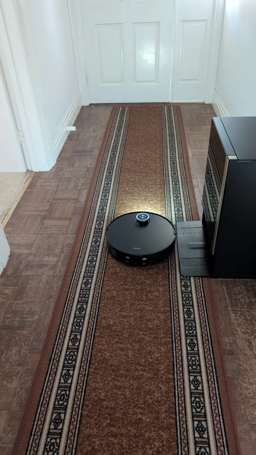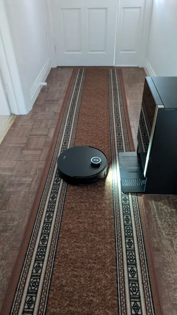 In everyday operation, the Mobius 60 performs well as carpets are left free of embedded dust thanks to its suction retention system which maintains airflow even when tackling larger debris while hard floors are polished with streak free results from the rotary mop system that adapts pressure to the surface. The MopSwap Hub ensures the correct pad is always engaged without manual intervention and the RGB AI navigation combined with the onboard camera means the robot rarely misses areas or becomes confused by complex layouts. Maintenance is simple, mop pads are automatically washed and dried in the base station and the dustbin can be emptied with minimal effort while regular rinsing of the water tank along with occasional filter checks keeps the system running efficiently.