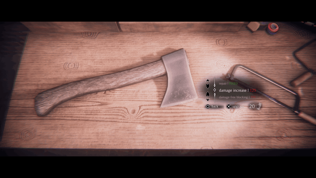 Your tools also take on new purposes in this realm. The axe that once helped gather firewood can now be used as a weapon against monstrous creatures. Dakota also carries a revolver that can shoot off locks or deal with threats when stealth fails. Throughout the game you can find scrap pieces that allow you to upgrade your equipment, improving things like the axe’s strength or the revolver’s reload speed. Everything works together well enough and the pacing between the calm real world sections and the tense dream sequences creates a nice rhythm. If you miss anything during your first playthrough, the game also includes a New Game Plus mode. This lets you start again with upgraded gear and unlocks extras such as visual filters and fun cheat style options like infinite health, which adds some replay value to the experience.