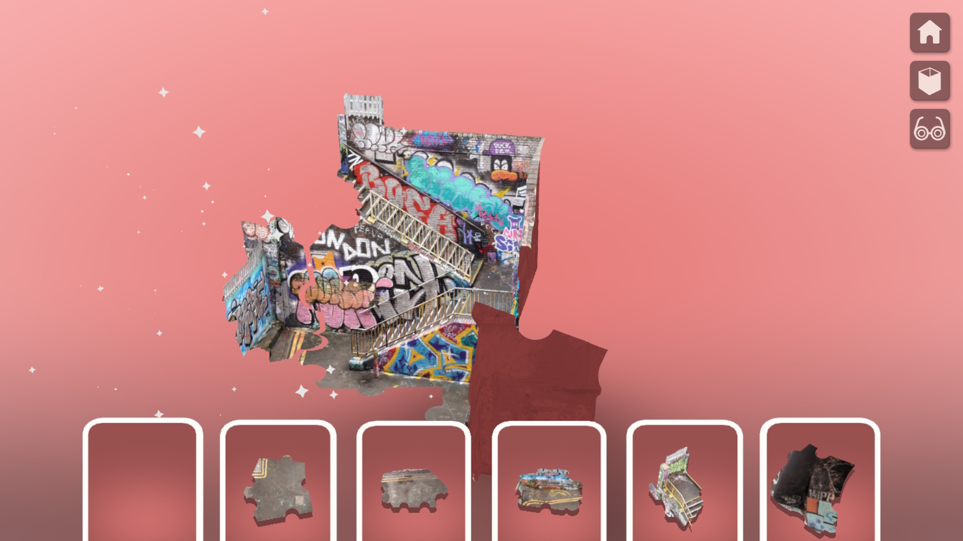 I will say my first impression, whilst good, was a little hesitant as the tutorial makes things seem like they might be a bit too oversimplified… only a few pieces available at a time and visual clues for when you are putting the right pieces together. But this was short‑lived as the game is essentially divided into two playing styles: “Classic Mode” or “Journey Mode”. Classic mode is how you are used to dealing with a puzzle… all the pieces in front of you… get to it! Journey mode provides only a few pieces at a time and allows you to slowly build the model… it’s intended for a more relaxed/casual play. I found Journey mode to be too “guided” so opted to play in Classic mode. But you can adjust it further by selecting how many pieces the puzzle should be broken into. Twenty‑five is the least and provides a bit of a challenge; moving up to 50 or 100 certainly starts adding challenge… then I tried a 400‑piece puzzle… when combined with the fact that some puzzles are internal, multilevel buildings, it can take quite a while to find all the locations for the pieces.
