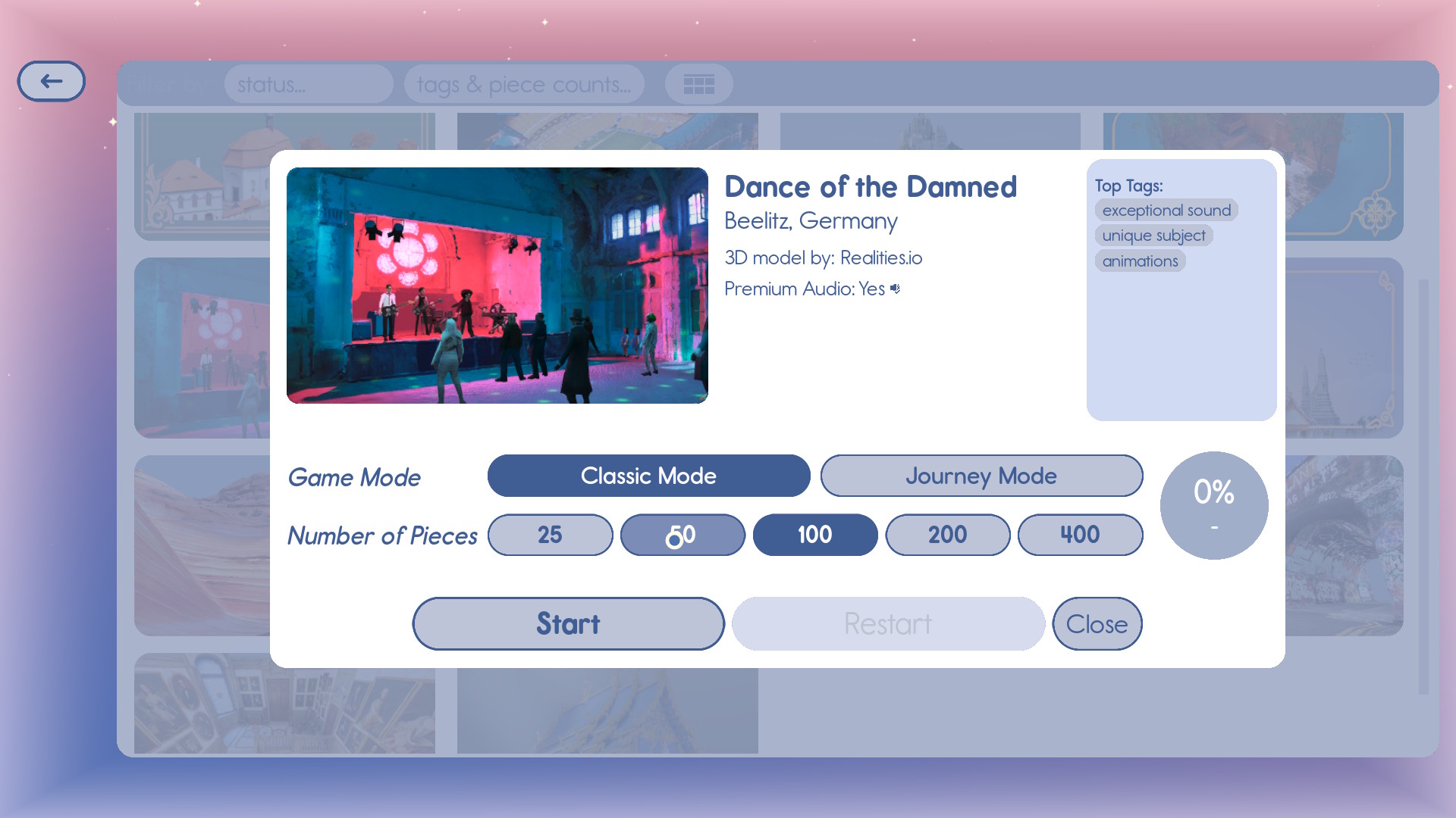 The developers have said they plan to release more levels as DLC in the future… I have no idea what price they are thinking of for extra levels… but I would say that given the base game is very cheap for the enjoyment I got from it… I’d say even if you just buy it for what it has at the moment, it’s worth it! If you enjoy jigsaws or dioramas… definitely pick up a copy (I mean, you can watch Beetlejuice dancing at a nightclub!)