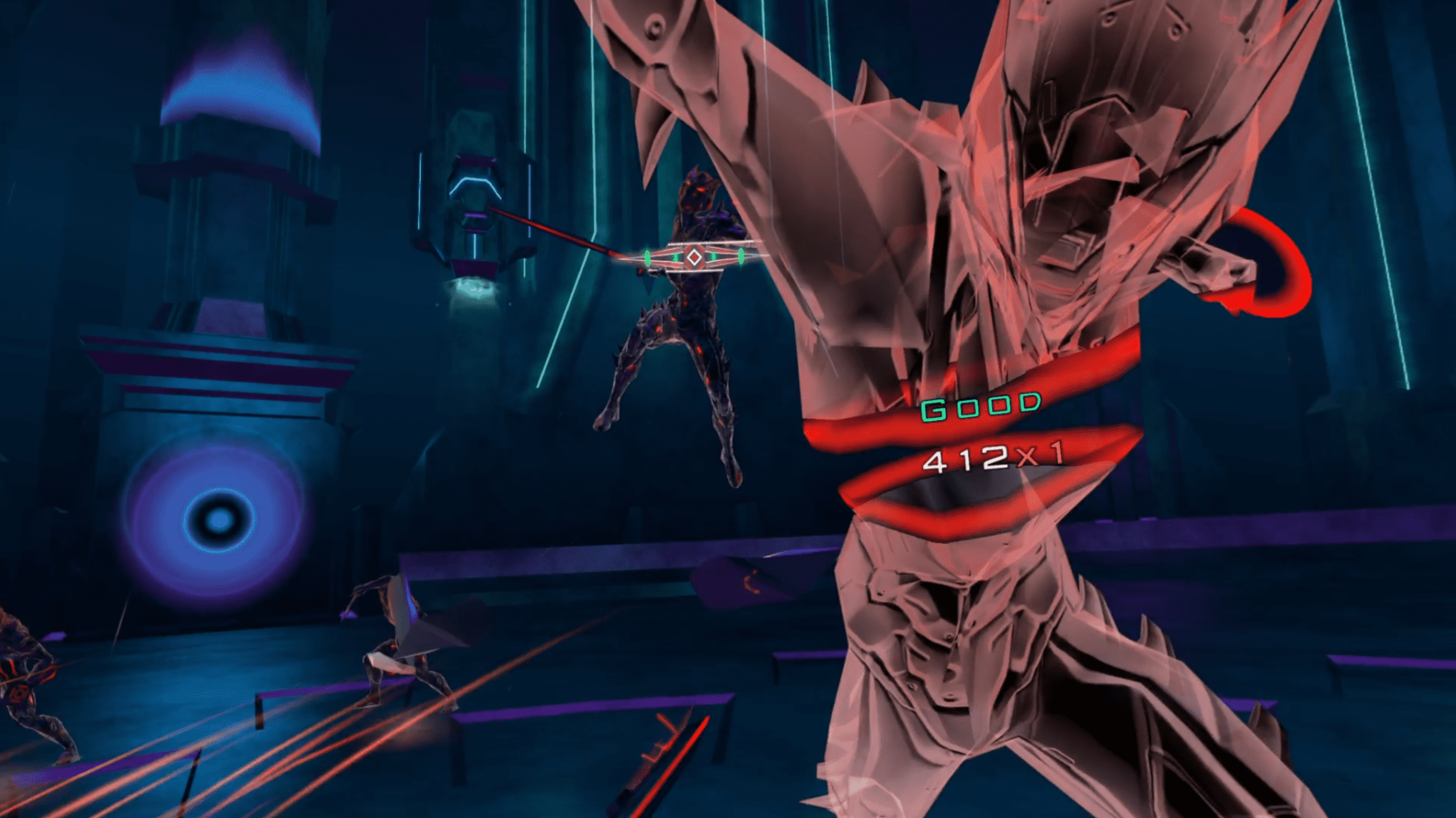 The physical side of RAGER is where the game really impressed me. Every swing that lands on the beat feels satisfying and the rhythm is easy to lock into once you settle into the flow of a song. The game is also surprisingly forgiving about where you stand inside your play space. As long as you stay within the in-game circle on the ground your movements usually register properly even if you drift slightly outside your real world boundary. That flexibility helps keep the action smooth and ensures that mistakes generally feel like your own fault rather than a tracking problem.