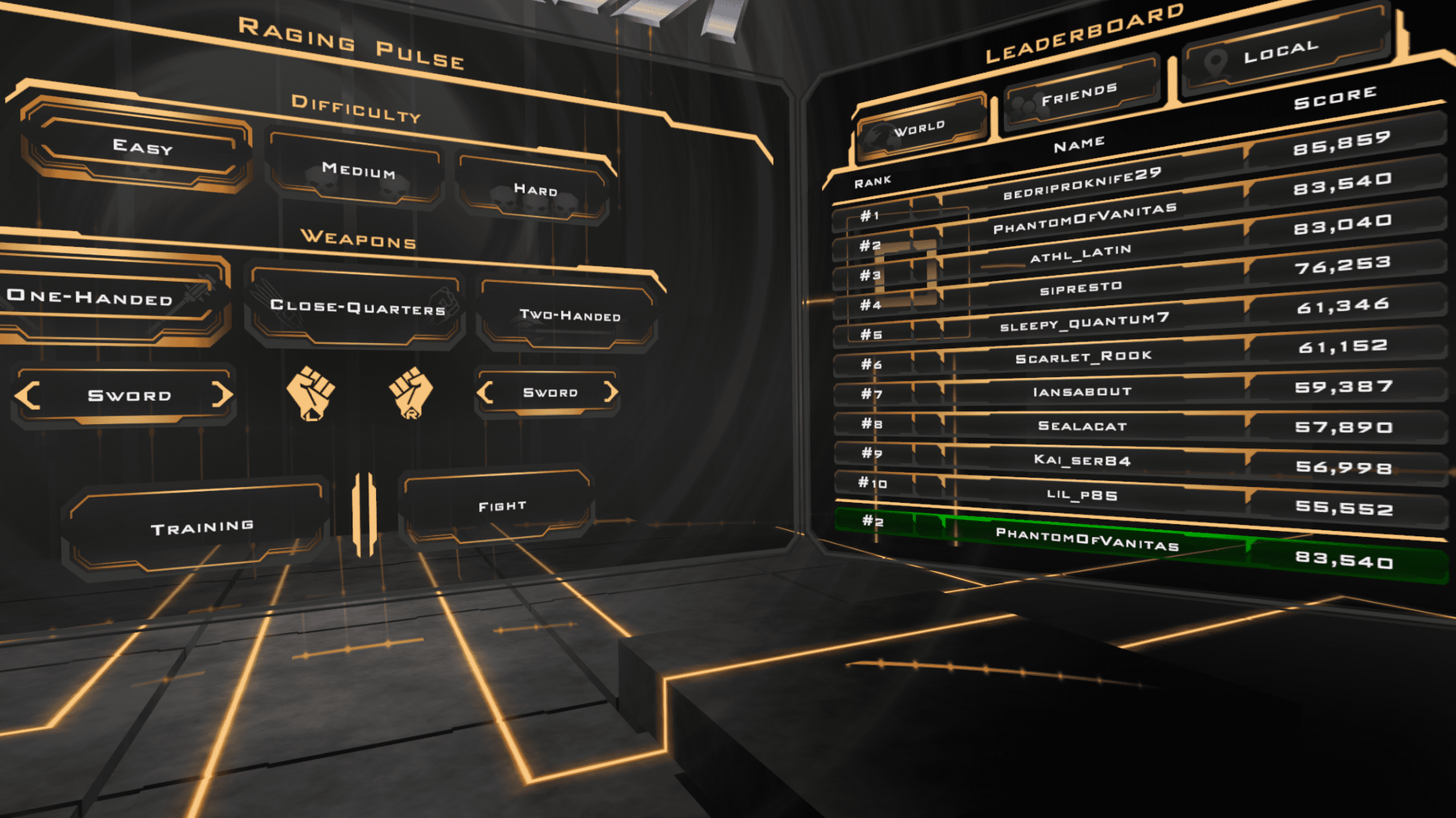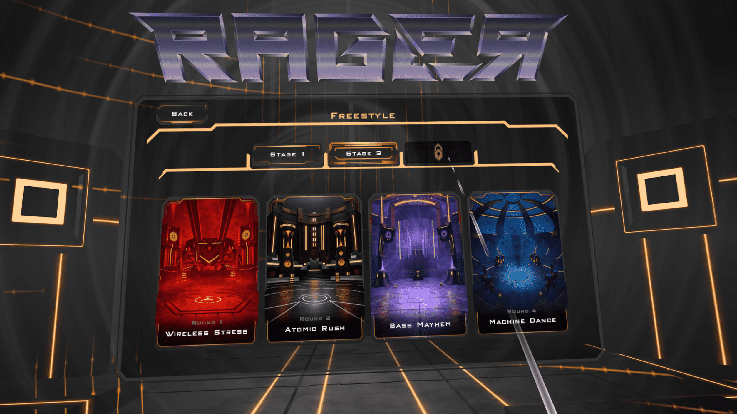Visually RAGER looks great inside the headset. The dark digital environments feel stylish and the enemy designs are varied enough to make each encounter interesting. Clear visual indicators guide every attack and block so you always understand what the game expects from you. The menus are sleek and easy to navigate and the performance stays smooth throughout the experience without any noticeable technical hiccups.