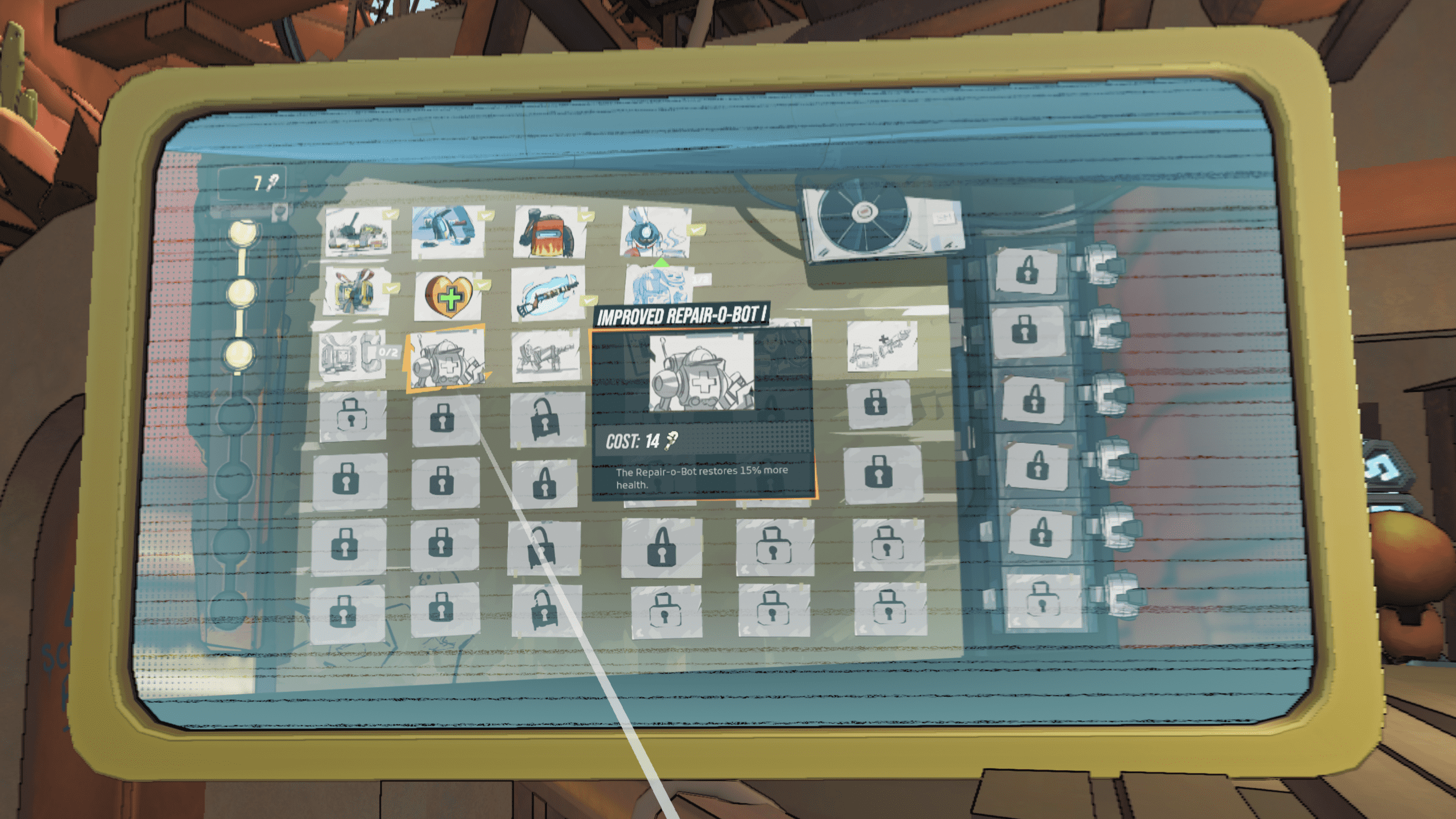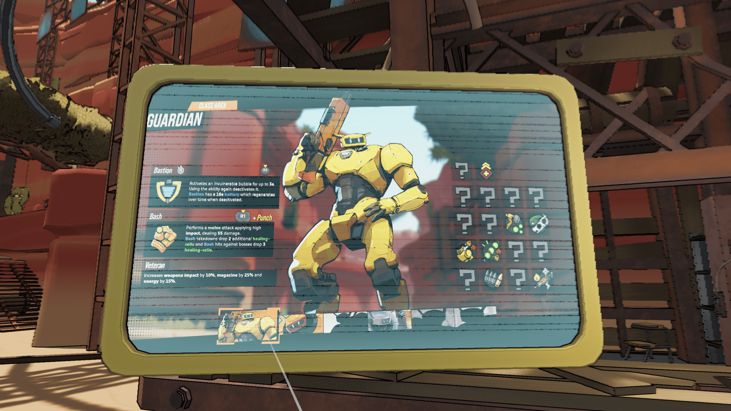 Between runs, you return to Basecamp, an interactive multi-level hub where you experiment, upgrade, and regroup. Here you can switch Guardian classes, test weapons in the firing range, sift through collected logs, browse enemy cards, or tweak difficulty. Permanent progression comes through spending wrenches to improve your healing bots, unlock new mechanics, enhance the environment of Basecamp itself, or introduce systems that meaningfully deepen future runs. Multiplayer is displayed on the hub interface but isn’t available yet which is an unfortunate omission, though knowing it’s coming keeps anticipation high. The hub is intuitive and easy to navigate, and in VR its physical layout helps solidify the game loop of planning, running, dying, upgrading, and trying again.