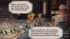 So on the face of it, I should love SaGa Minstrel’s Song… I mean, there are 8 protagonists, each with interesting backgrounds and very different introduction acts. My experience of the story so far is that the narrative is driven more by the quests you complete and who you speak to rather than being compelled or propelled by a linear narrative. My experience is that the party I gathered was entirely based on who I met and spoke to, the timing that I visited different areas (sometimes the characters I expected weren’t even available when I tried a different path; sometimes I couldn’t even find a path to find them). And that seems to be the one of the fundamental novelties of the game – the way it leans into letting the player discover and set the story and pace.
