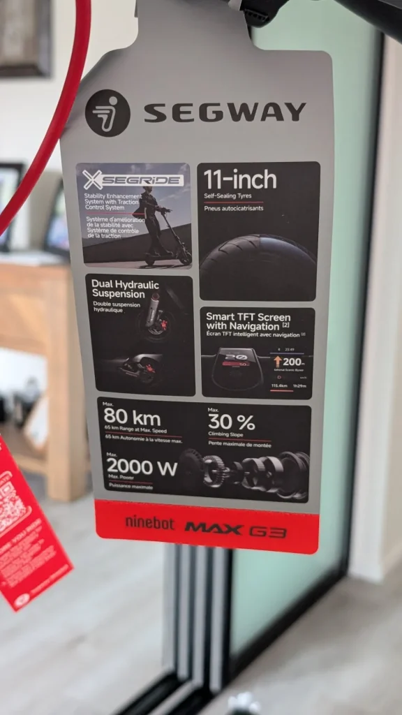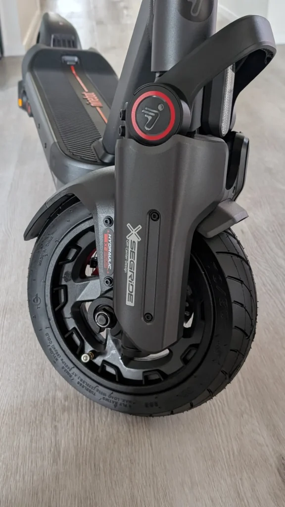 As to the ride? Comfort and safety are also central to the design of the Segway Ninebot Max G3. The scooter features dual hydraulic suspension at both the front and rear which smooths out bumps and uneven surfaces. The 11-inch self-sealing tyres automatically close punctures up to four millimetres in diameter which reduces maintenance worries. Dual disc brakes provide strong stopping power and the IPX6 water resistance rating ensures reliable performance even in wet conditions.