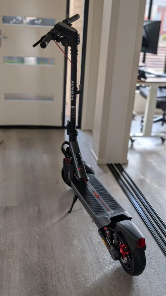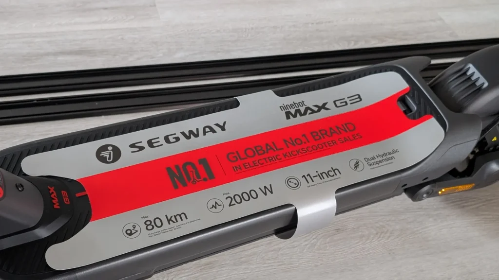 The Max G3 is powered by a 2000W peak motor that delivers quick acceleration and the ability to climb slopes of up to 30 percent. It can reach 25 km/h in just 2.4 seconds which makes it feel responsive in stop-start city traffic. The 597Wh battery works in conjunction with Segway’s SegRange system to optimise efficiency and extend range. In eco mode the scooter can travel up to 80 kilometres at a steady 15 km/h while in sport mode it manages around 65 kilometres at 25 km/h which is impressive.