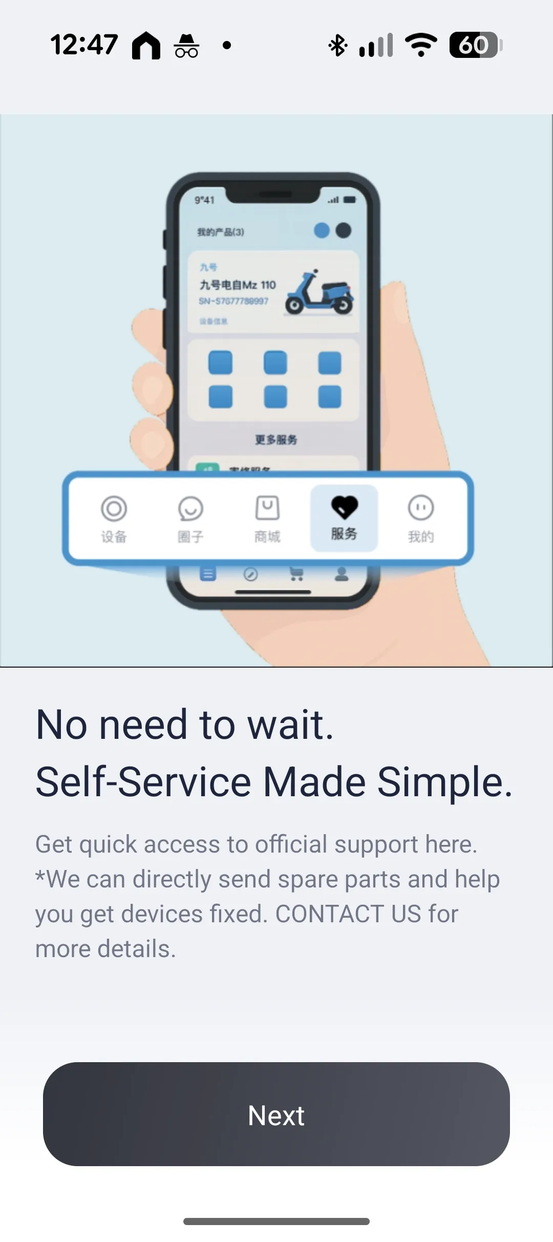 After installing the app, you need to create or log into your Segway account, then enable Bluetooth on your phone. The app will then search for nearby devices and once it detects your scooter, you can pair it by following the on‑screen instructions.
